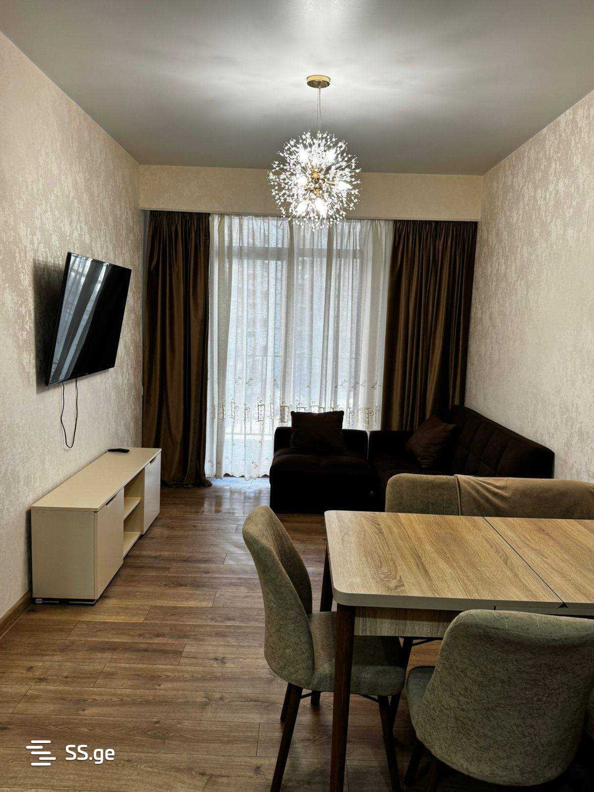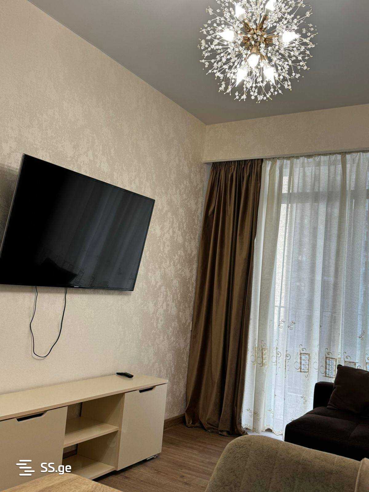 Комментарий: For rent on Tsitsishvili Street in Varketili. Newly built, renovated 55 sq.m. 2-room apartment in a new building. It has 1 bedroom. Balcony. Central heating. Furniture and appliances included. Floor: 4/14. Price: $450 (1200 lari for two months)