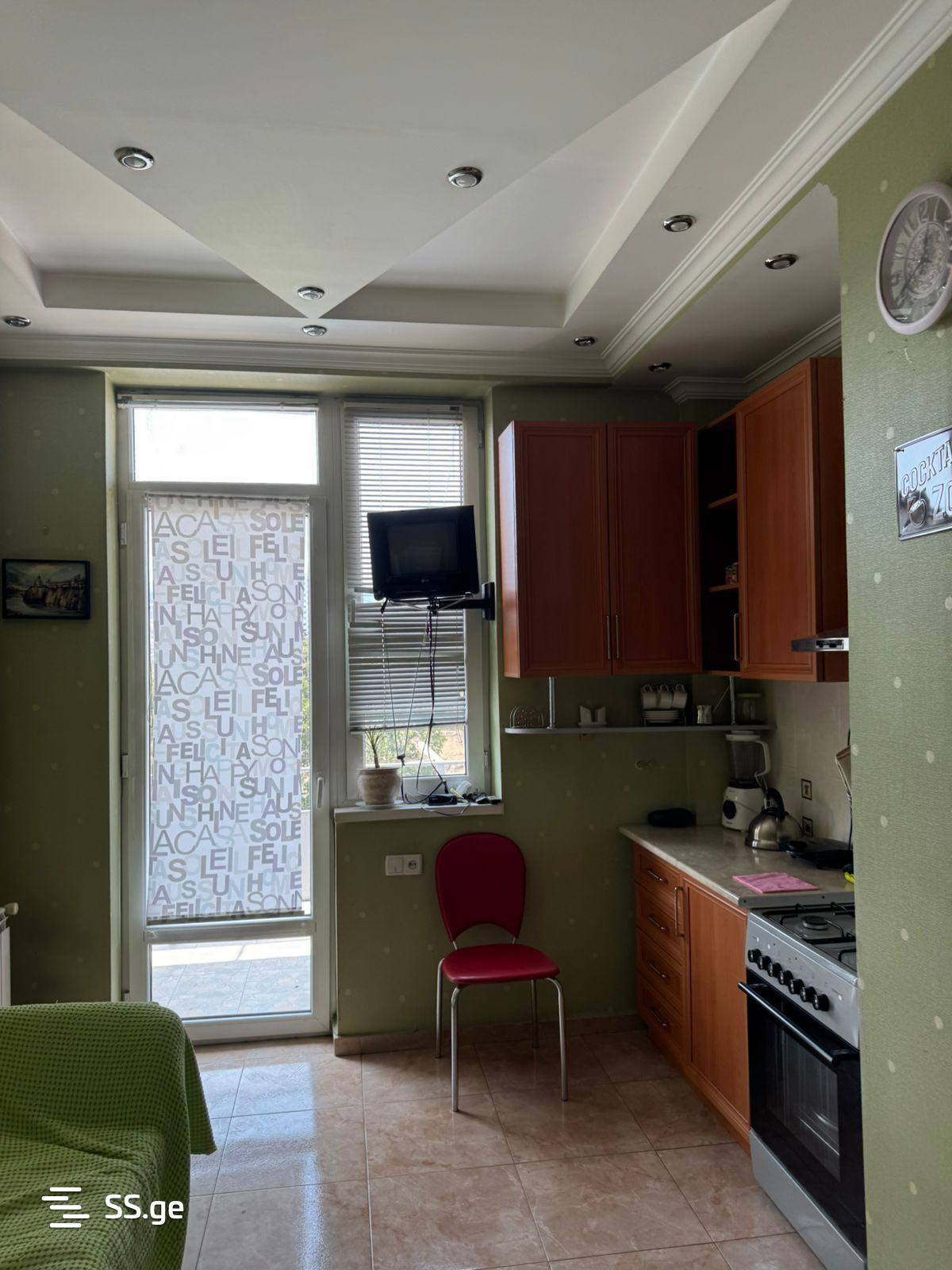 Комментарий: The apartment is in very good condition. Bright, warm, with a view of Mtatsminda. The furniture and appliances shown in the photo remain in the apartment. It is in an ideal location, directly across from the Isani metro station. There are many supermarkets, pharmacies, and a large shopping center near the building.