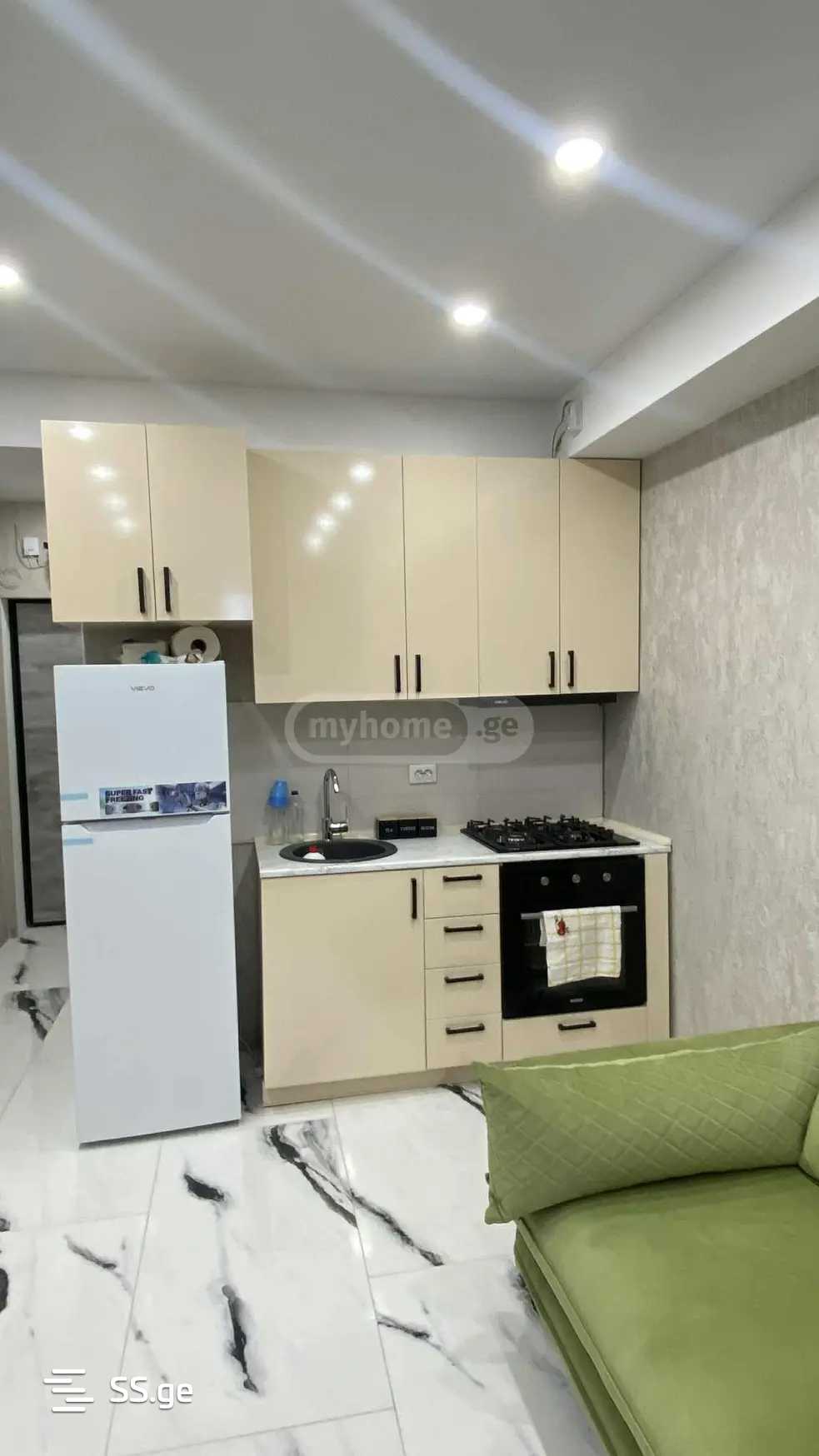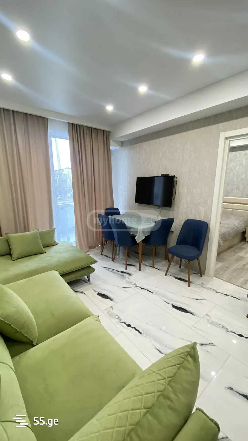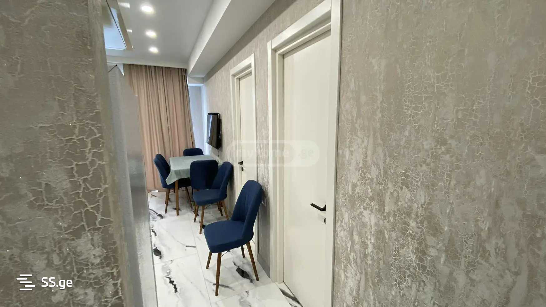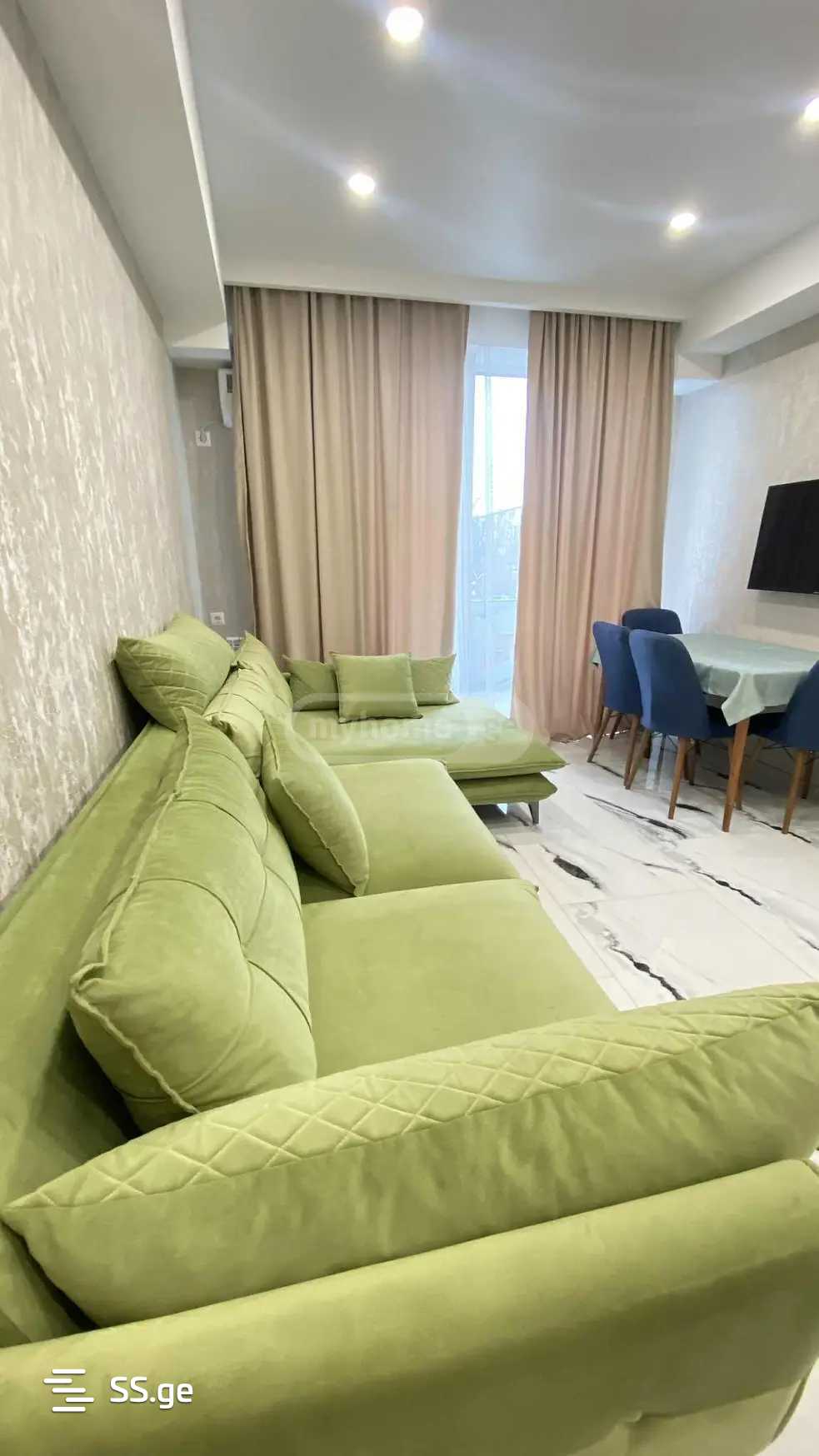Сдается 3-комнатная квартира в строящемся доме, с евроремонтом, центральным отоплением, кондиционером, мебелью и бытовой техникой, а также посудой, постелью, электрочайником, утюгом, гладильной доской и всем необходимым для семьи. Нежилая квартира, цена 1500 лари, Варкетили, улица Калубани.