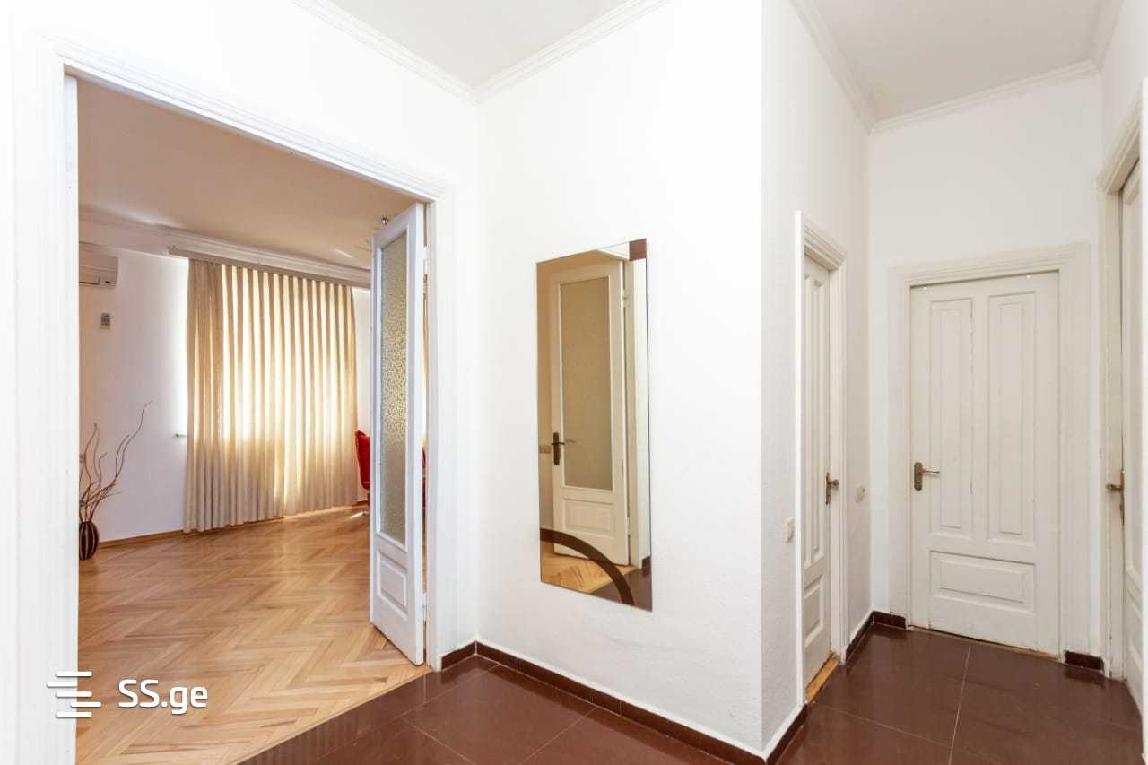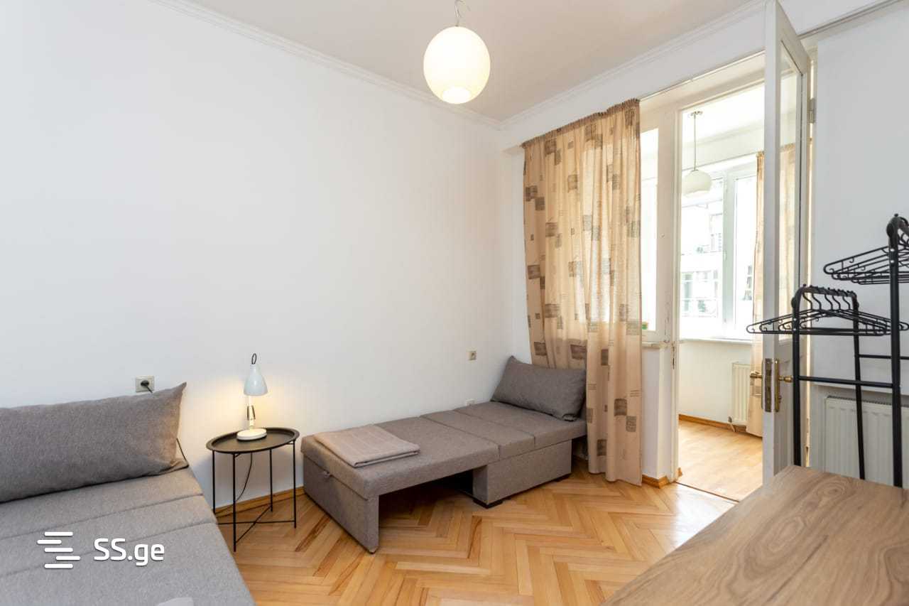 Сдается в Мтацминде, на улице Шевченко, трехкомнатная квартира с ремонтом, с изолированной кухней, гостиной, двумя спальнями + кабинет, двумя санузлами, мебелью и техникой, балконом, прекрасным видом.