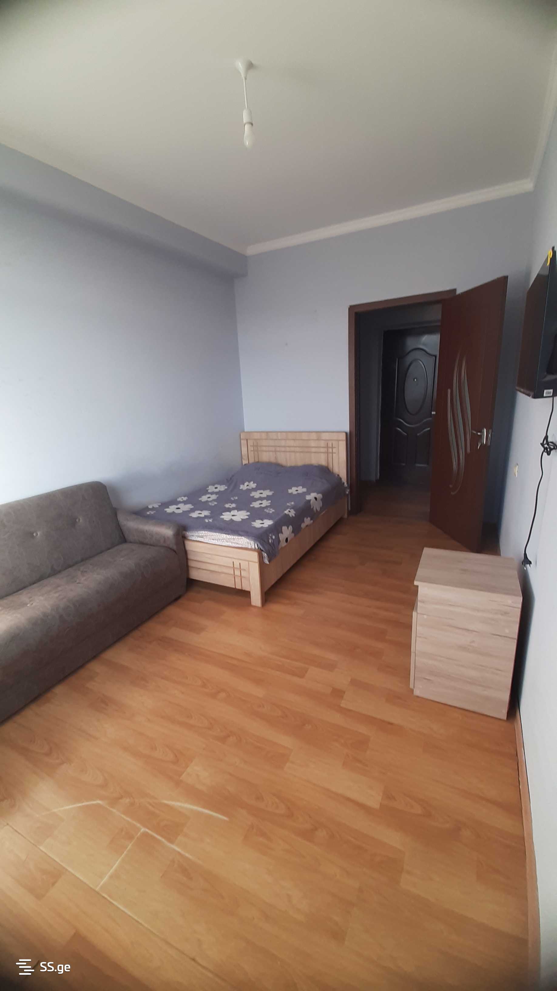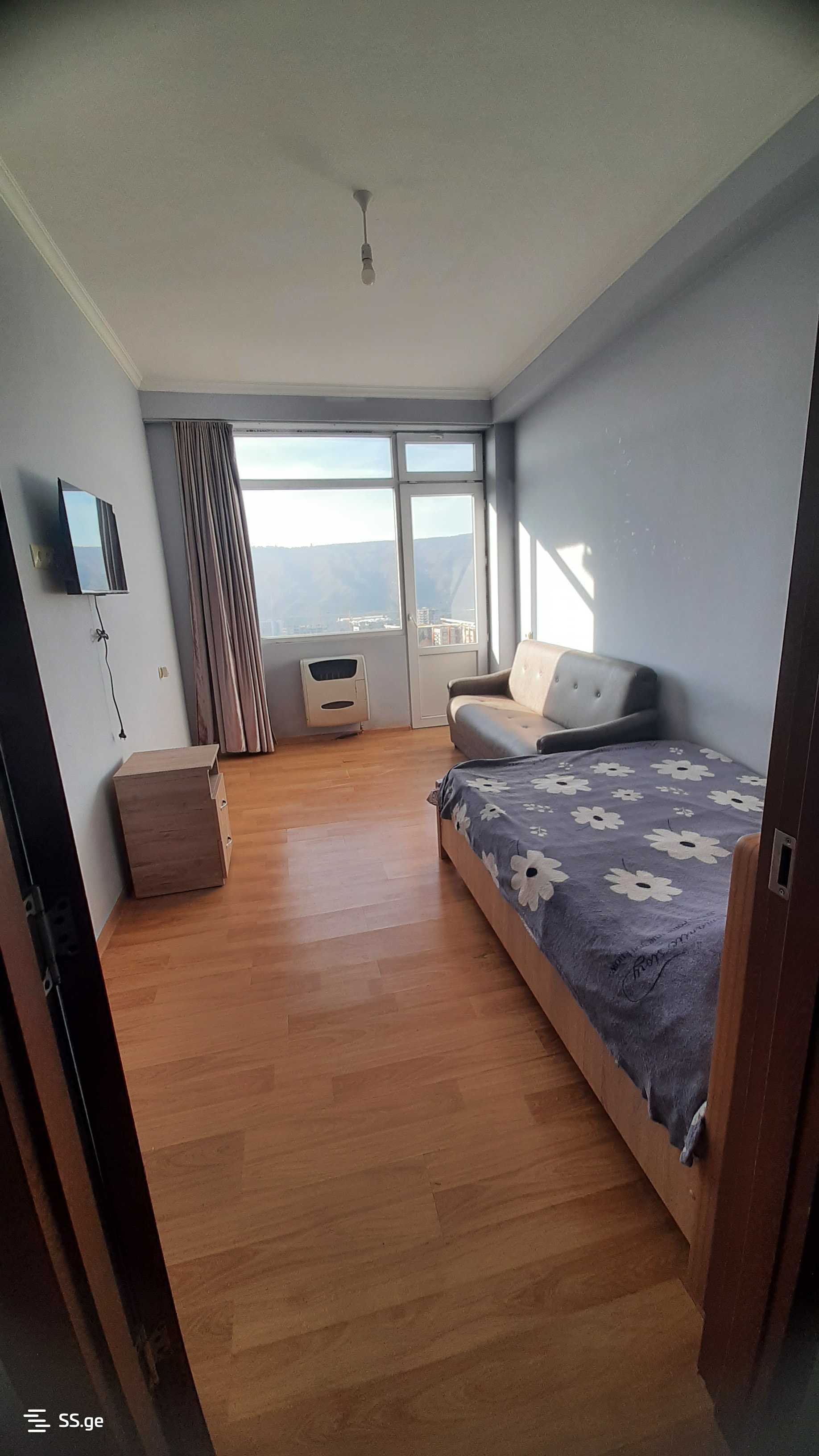 Комментарий: For rent on Moscow Avenue, near Samgori Metro, a furnished 2-room apartment of 40 sq. m. located on the 13th (14th) floor of a newly built building, with furniture and appliances, iron door, balcony, hot water, and good views. Price is 350 USD, with payment for the first and last month. Address: Moscow Avenue 38.