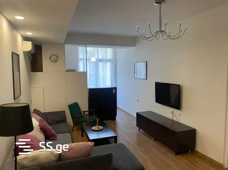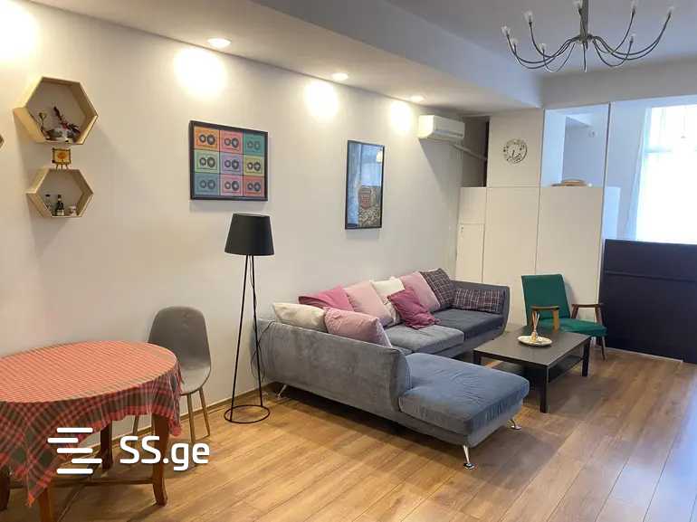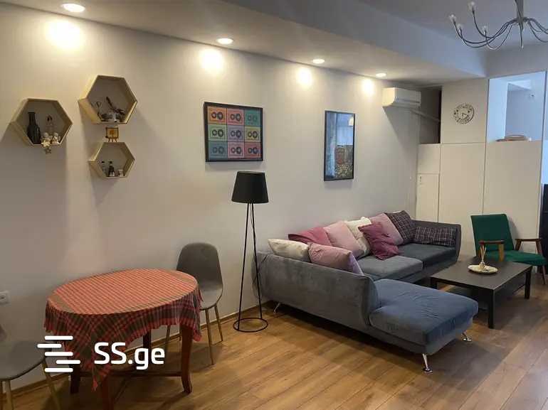 Комментарий: A newly renovated apartment is for rent on Sulkhan Tsintsadze Street. The apartment is fully furnished with appliances, furniture, and all necessary inventory.