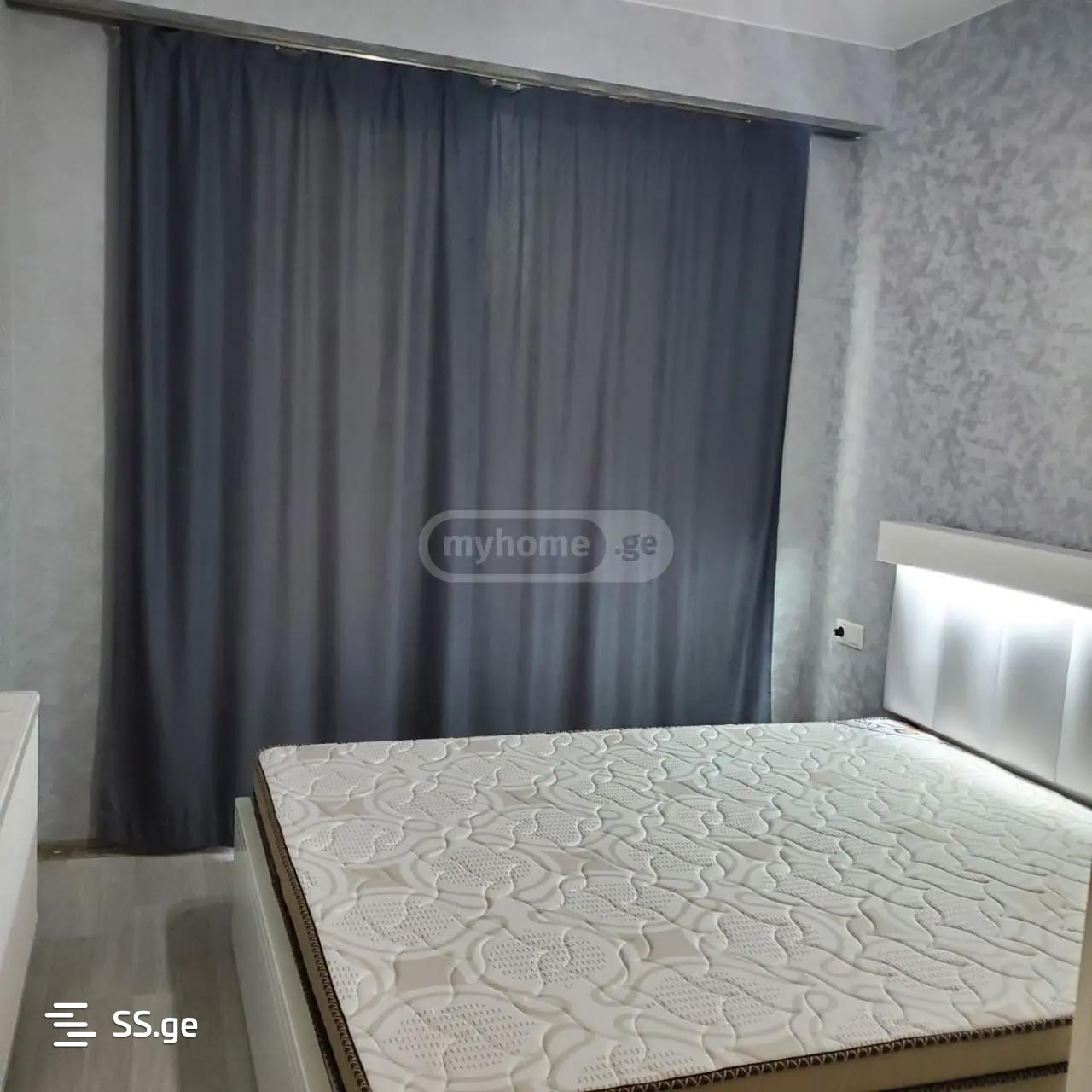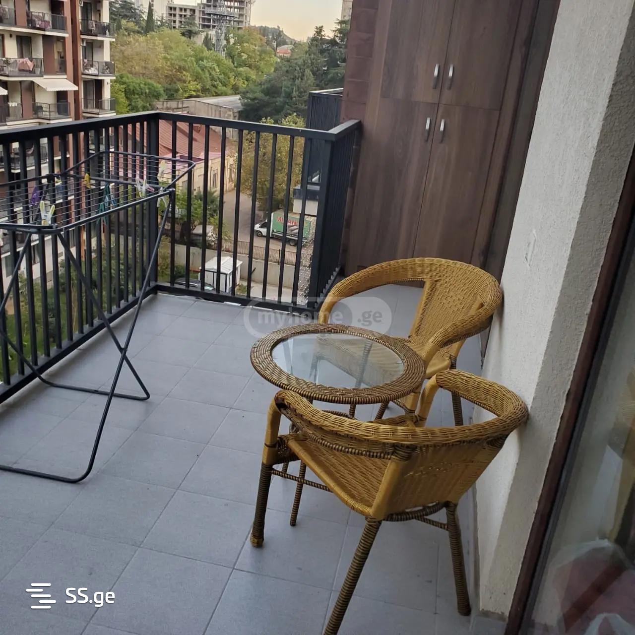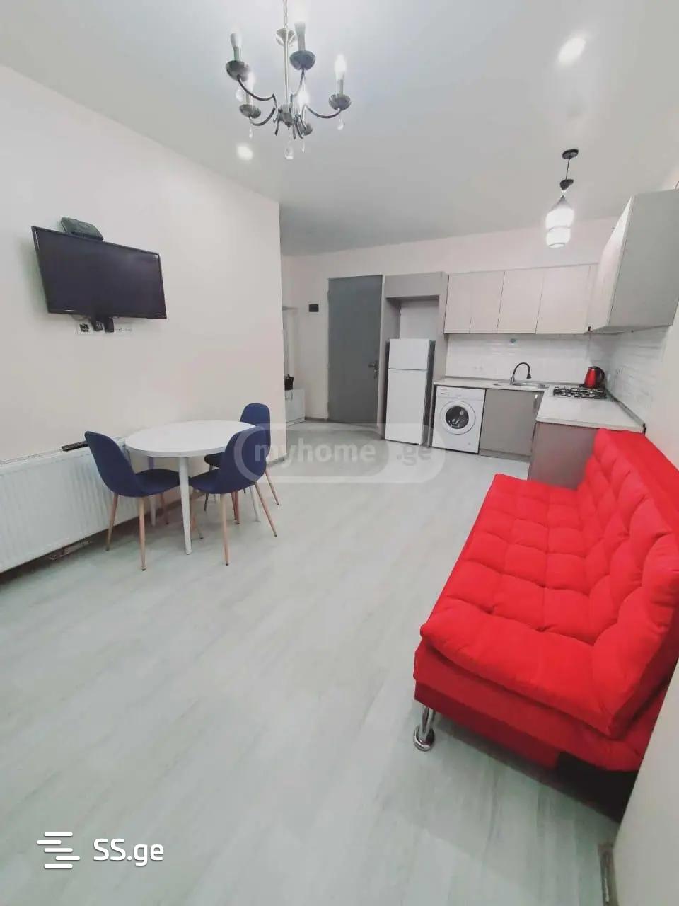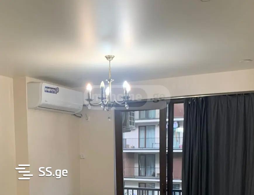 Квартира представляет собой 2-комнатную студию. С отдельной спальней, балконом со стороны двора, детским стадионом, зеленью, охраной, шлагбаумом и камерами наблюдения.