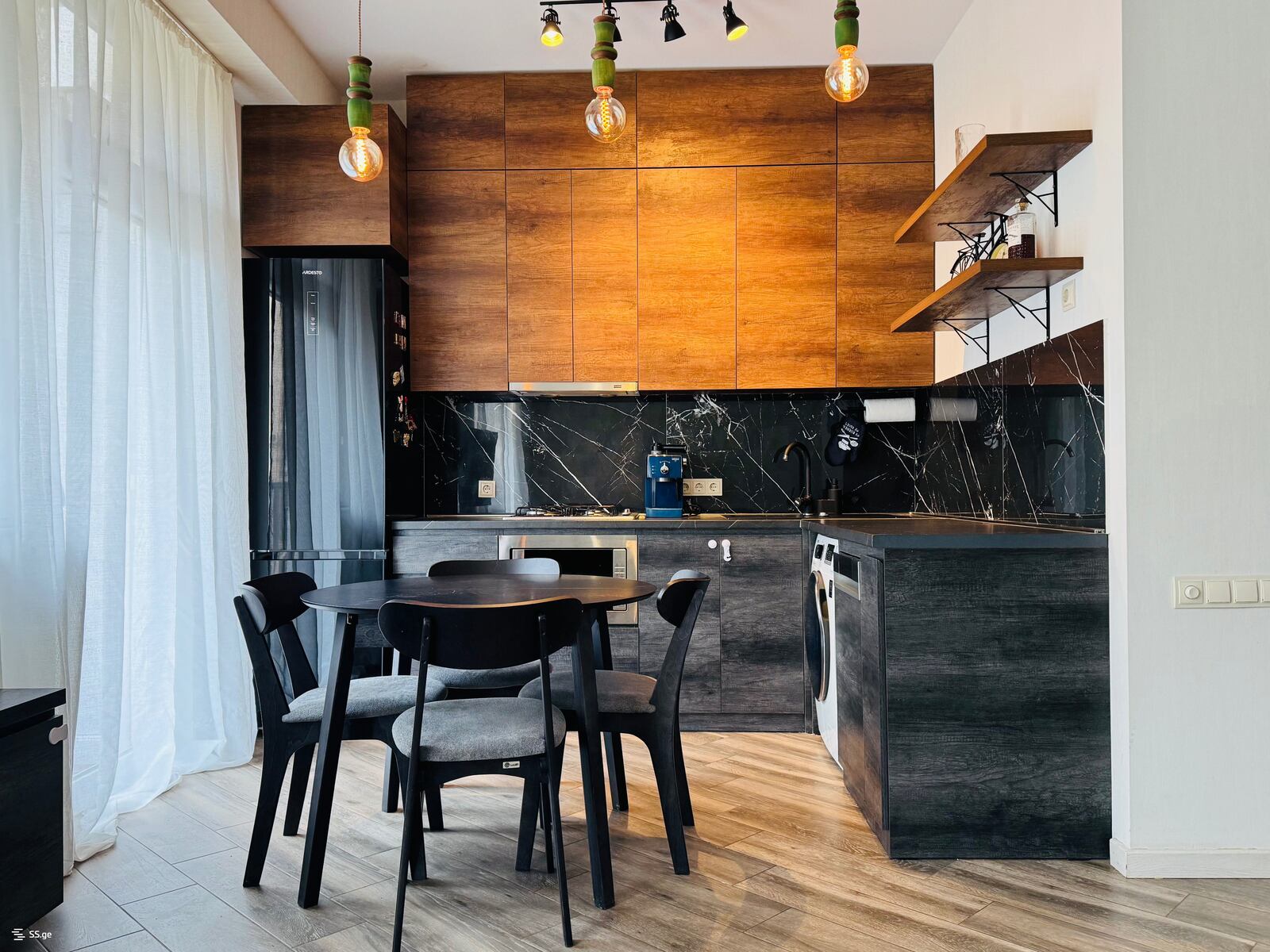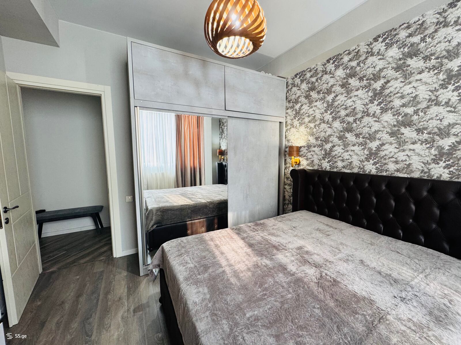 Сдается: двухкомнатная квартира студийного типа по адресу ул. Нино Жвания 8, полностью укомплектованная необходимой мебелью и бытовой техникой (стиральная машина, холодильник, газовая плита, микроволновая печь, встраиваемая посудомоечная машина, кофемашина, кондиционер). Квартира уютная и комфортная, расположена в тихом месте. Сдается в аренду с подземной парковкой. Цена