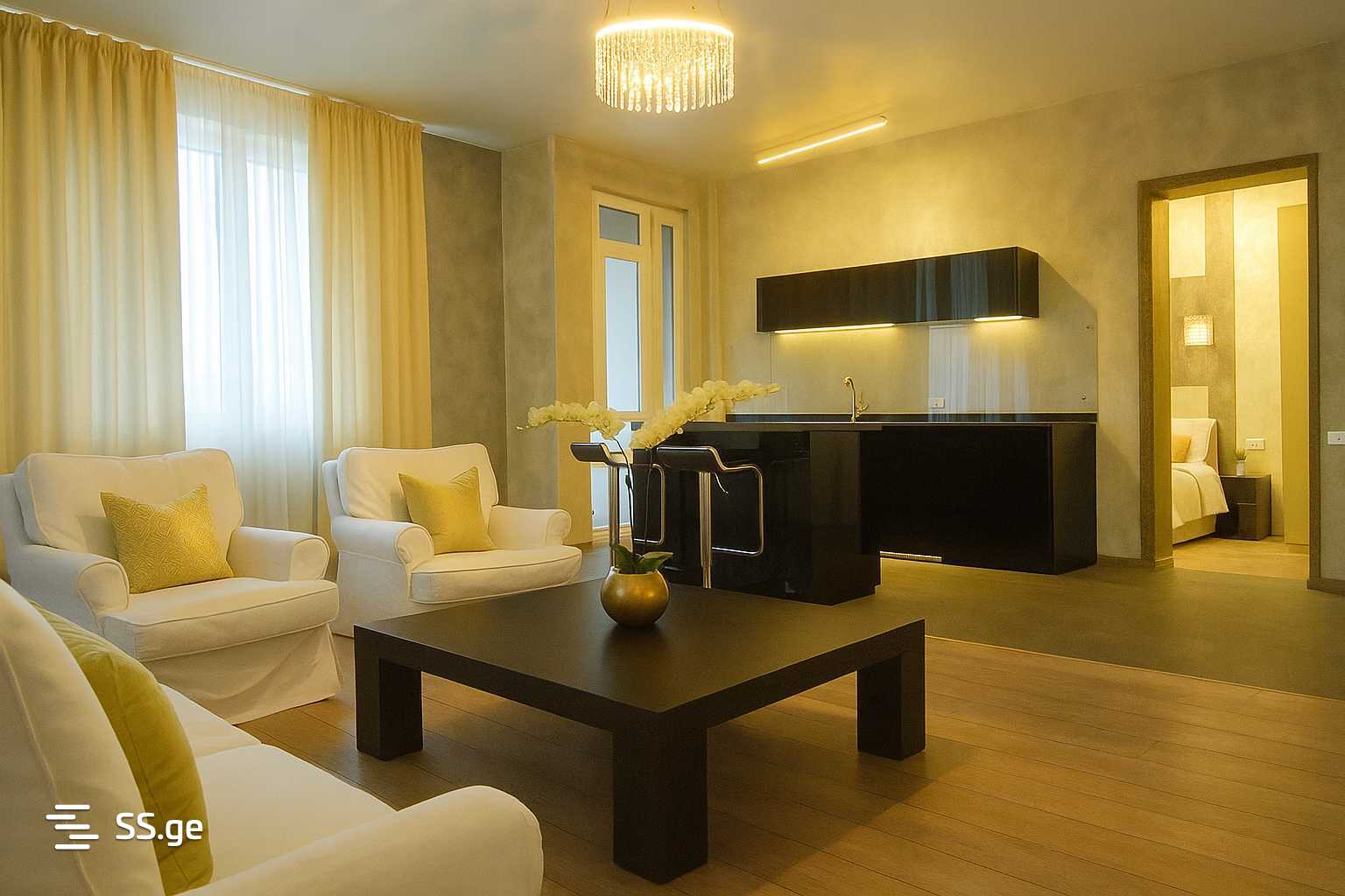 Комментарий: I do not collaborate with agencies! A large 2-room apartment (90 sq/m) is available for rent in Vake, 150 meters from the round garden on Barnovi Street, in a newly built elite building. The apartment is newly renovated by a renowned designer, with new furniture from Italy, new appliances, central heating, a veranda, a jacuzzi, an intercom, security in the entrance, and a locked entrance.