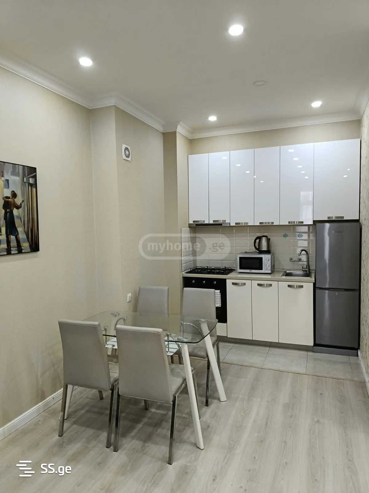 Сдается 2-комнатная квартира со всей необходимой мебелью и техникой в строящемся доме по адресу улица Кипшидзе 9 в Вакеши, на первом этаже дома расположены супермаркеты Европродукт и Спар.