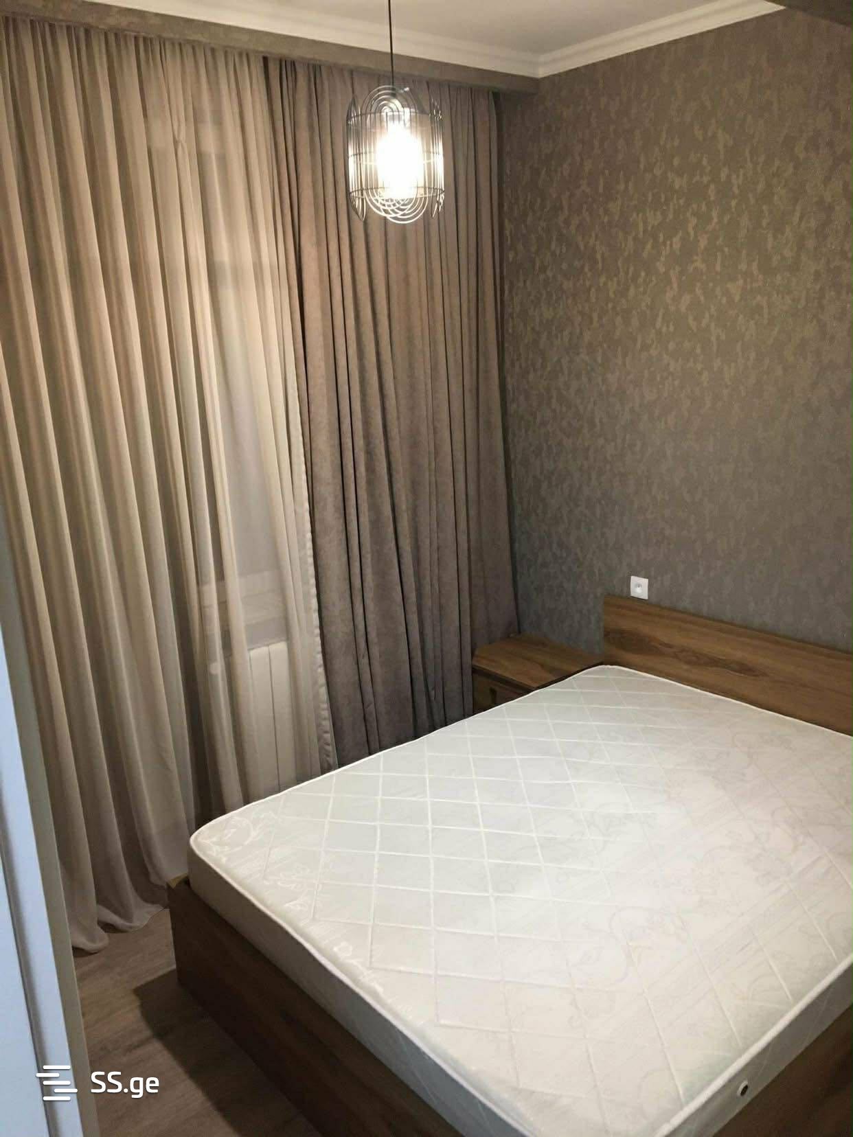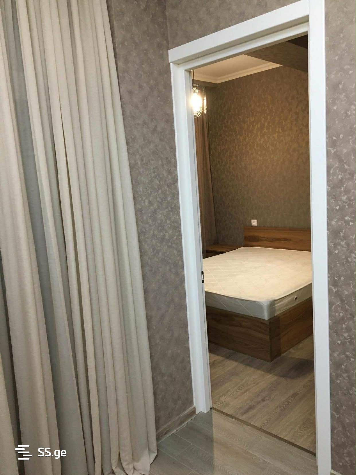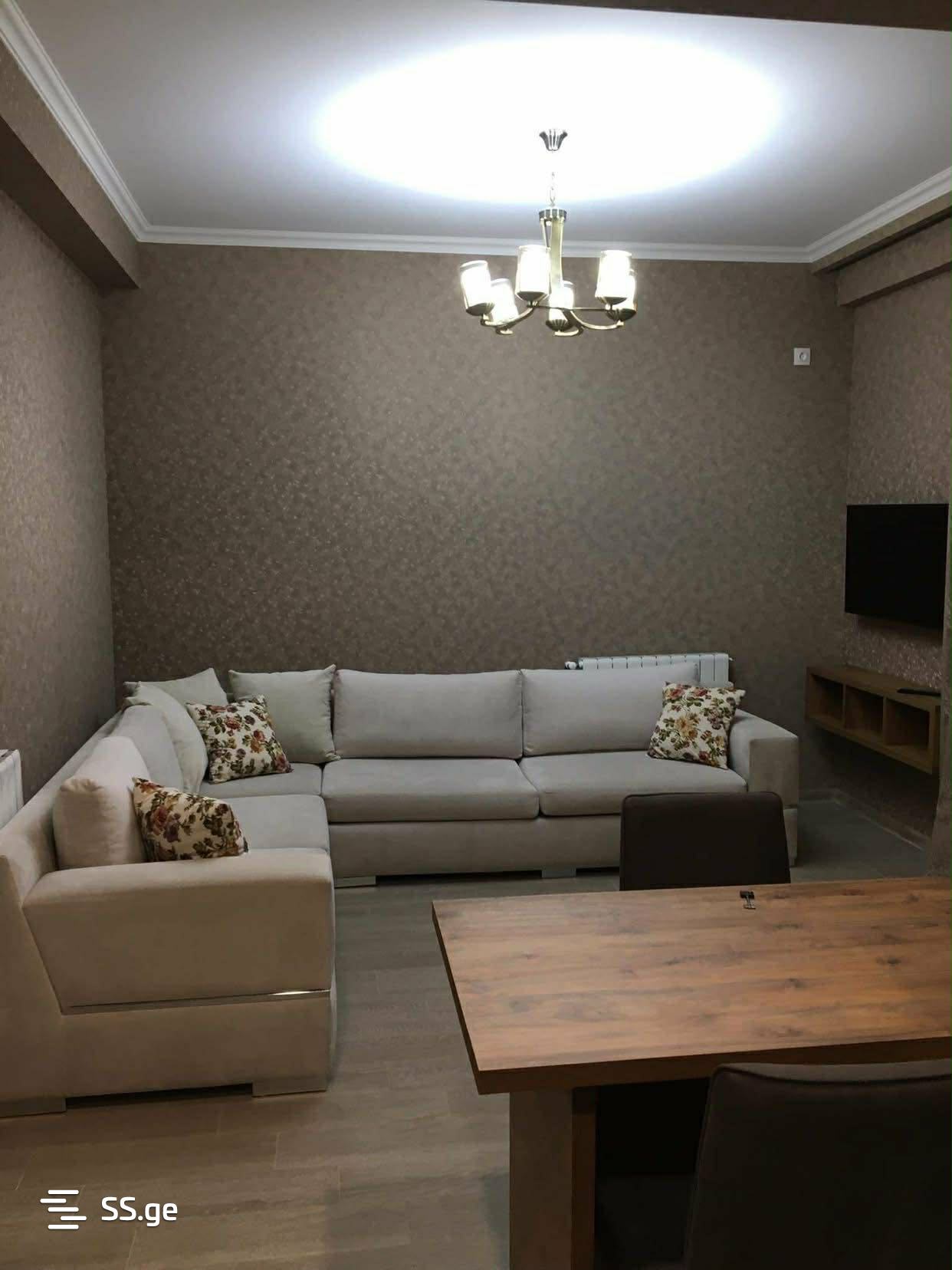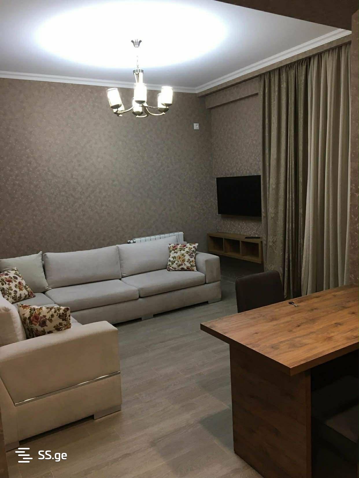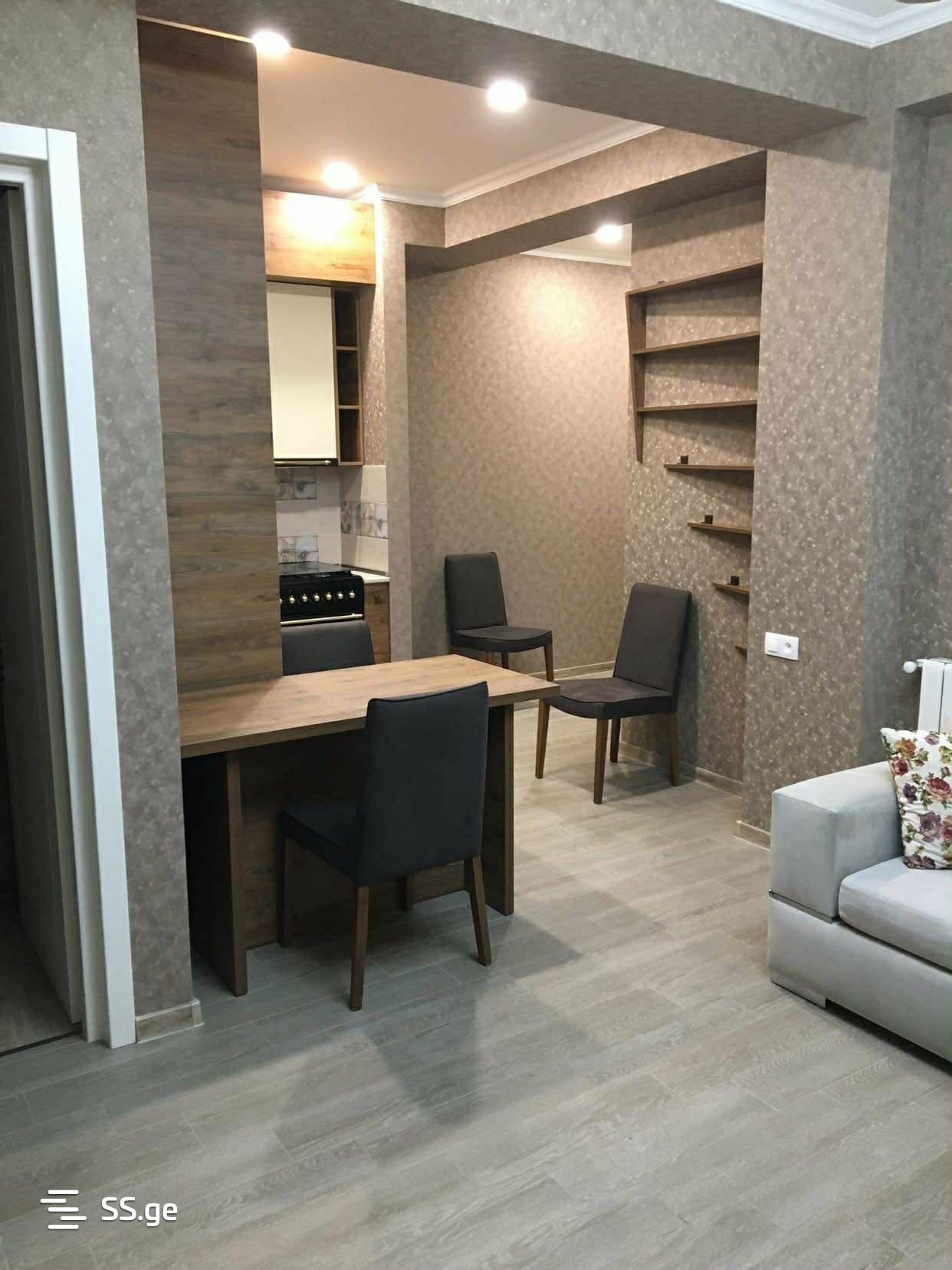 Комментарий: A two-room renovated apartment with furniture and appliances is for rent near Akhmeteli Metro.