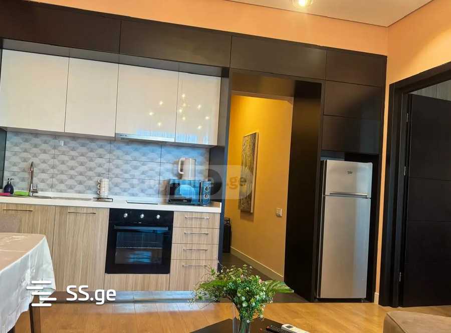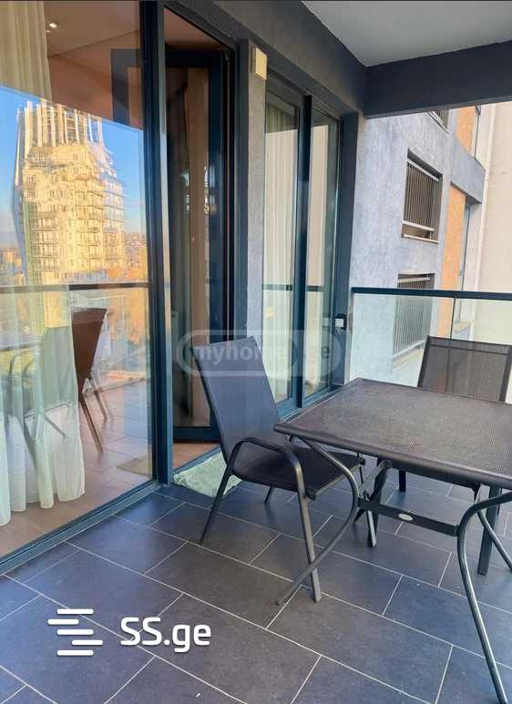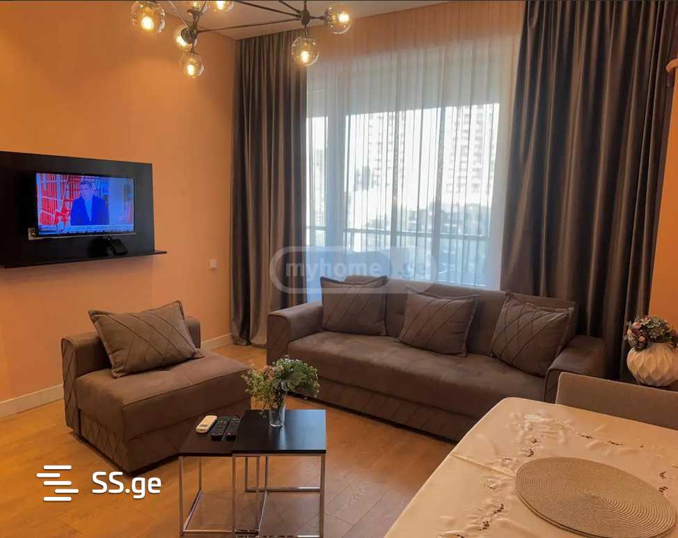 Срочно сдается 2-комнатная квартира с новым ремонтом в новом доме Аксиса, престижное место, с/у 65 кв.м., с мебелью, техникой, балкон с лифтом, вид на Мтацминду и бассейн.