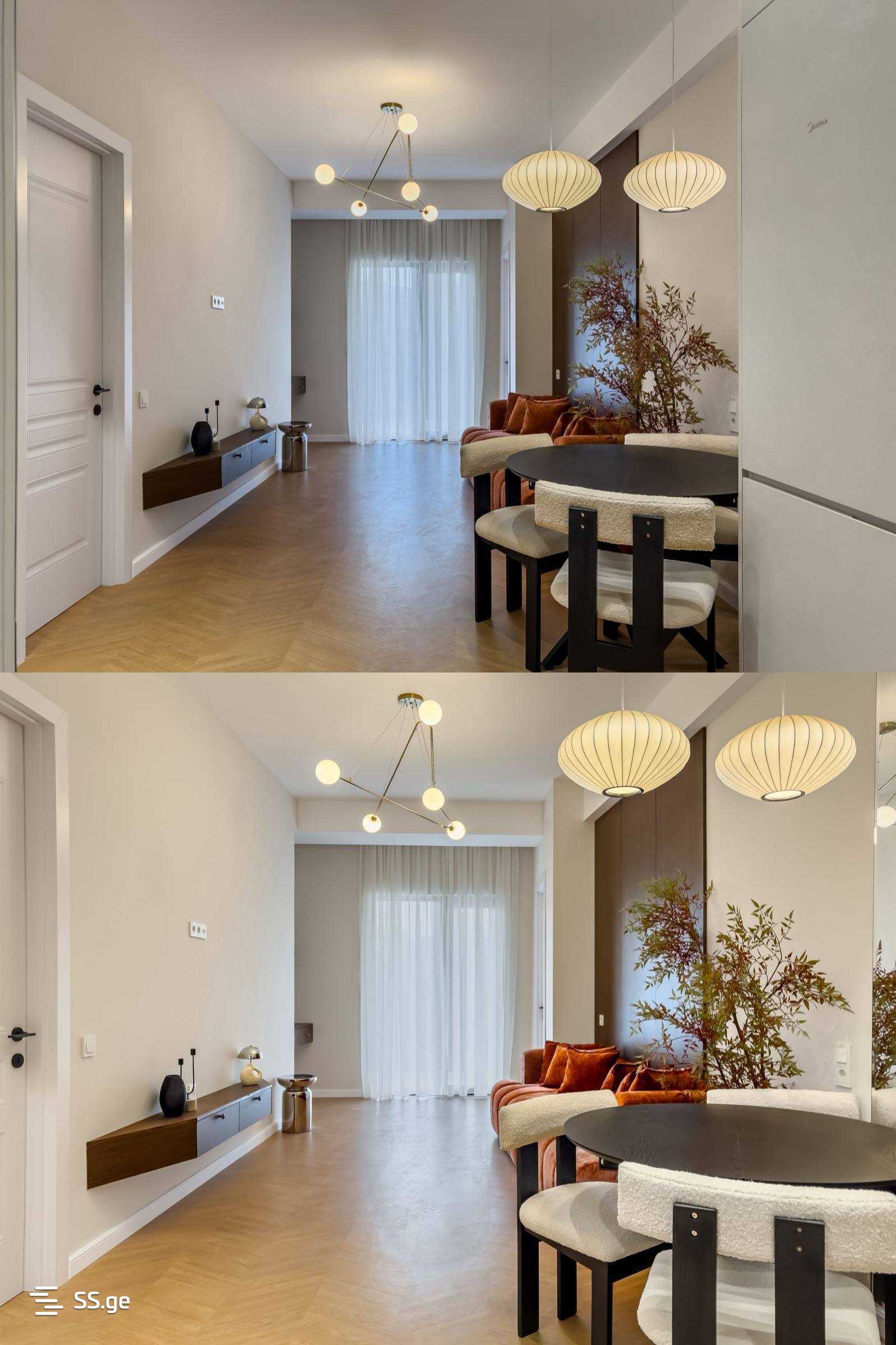 Комментарий: For rent on Sandro Euli Street, a furnished apartment with designer renovations. Contact me for details at WhatsApp +995579996569