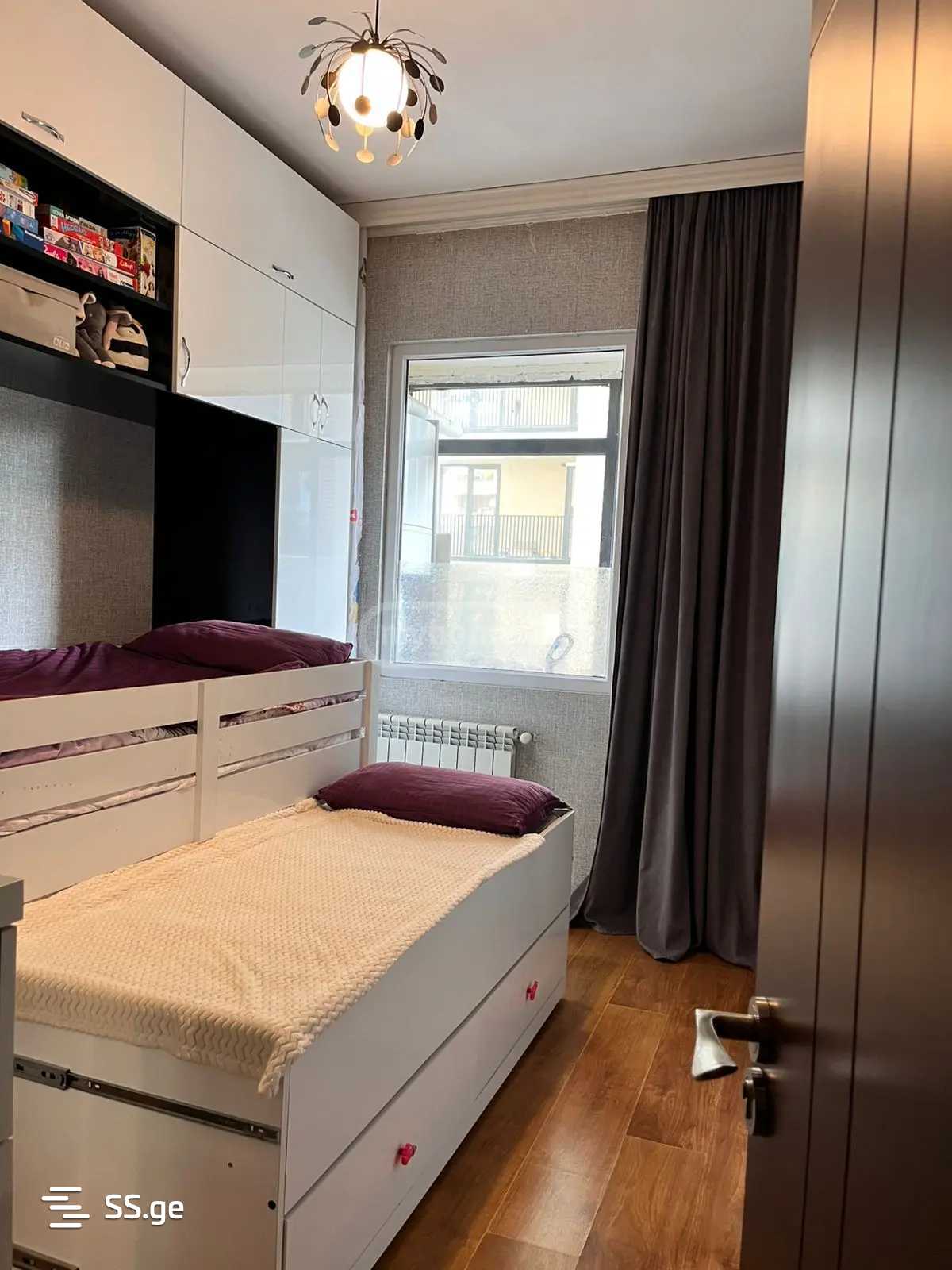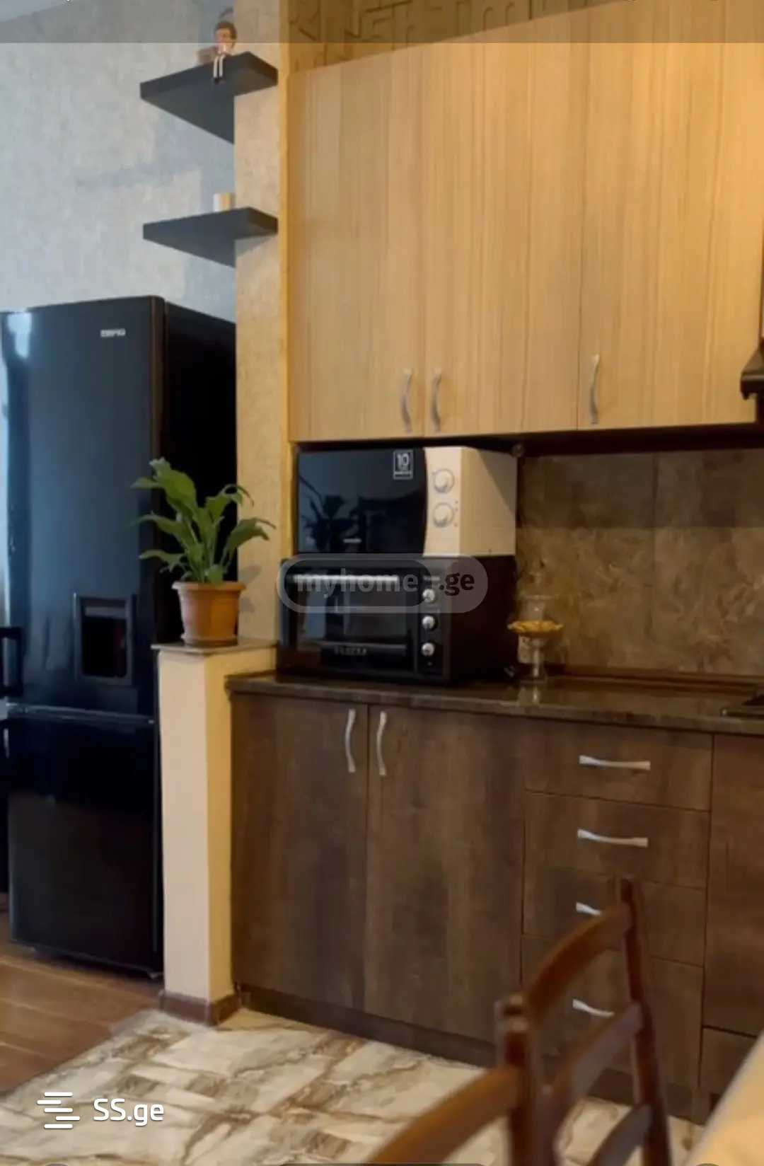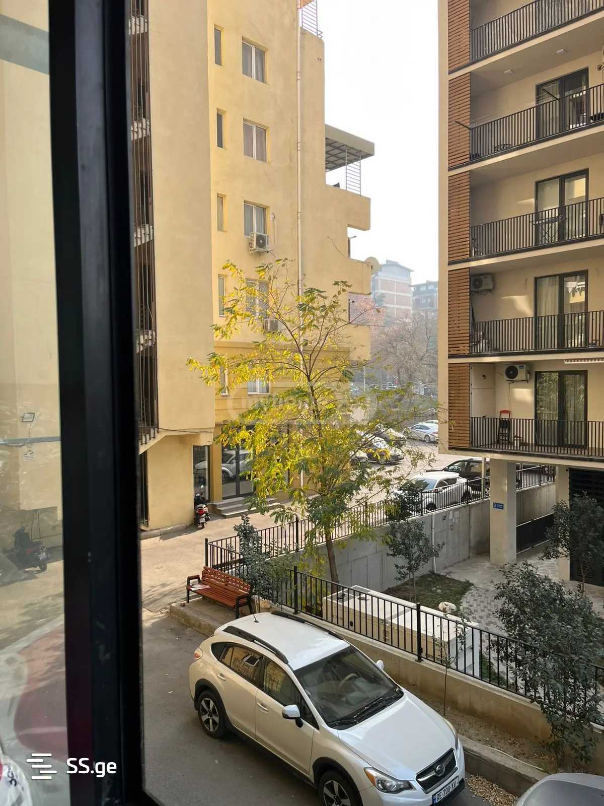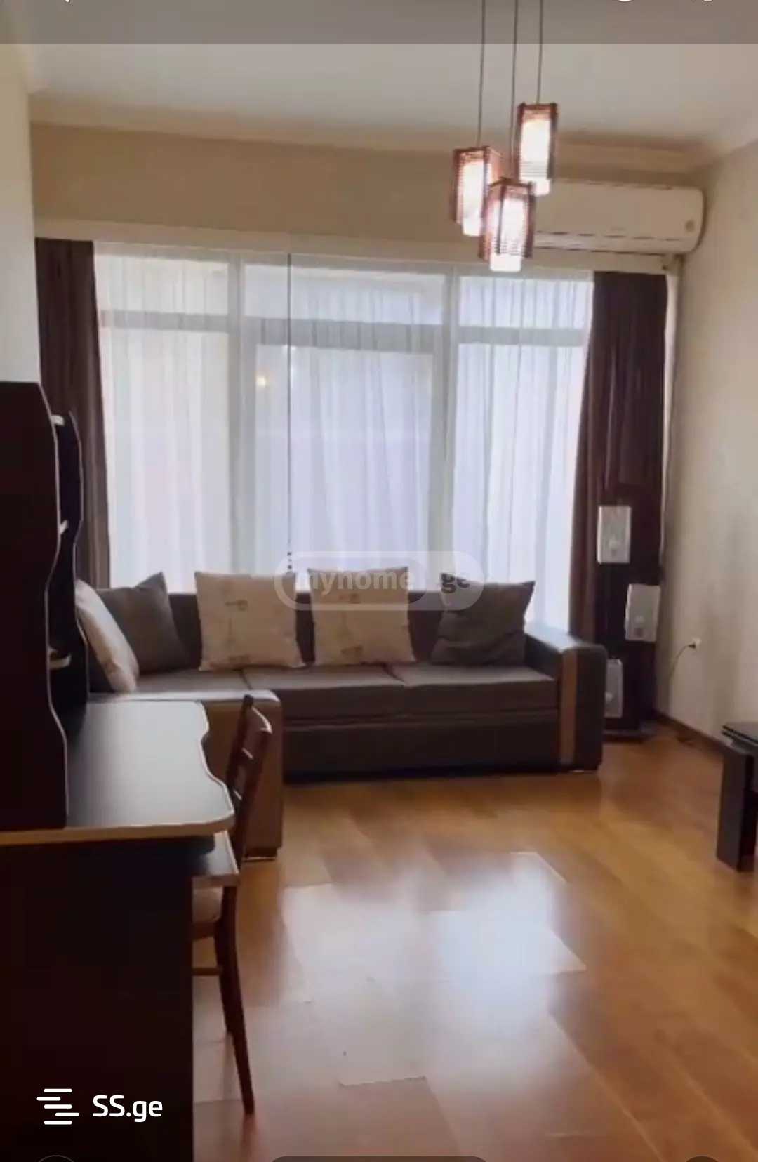 Комментарий: For rent is a 2-room, 55 m² bright apartment in Tornike Eristavi alley. The apartment is fully renovated, with large windows, a balcony, 1 bedroom, and a studio-type living room. The space is very bright, cozy, and fully furnished. Furniture and appliances remain in the apartment.