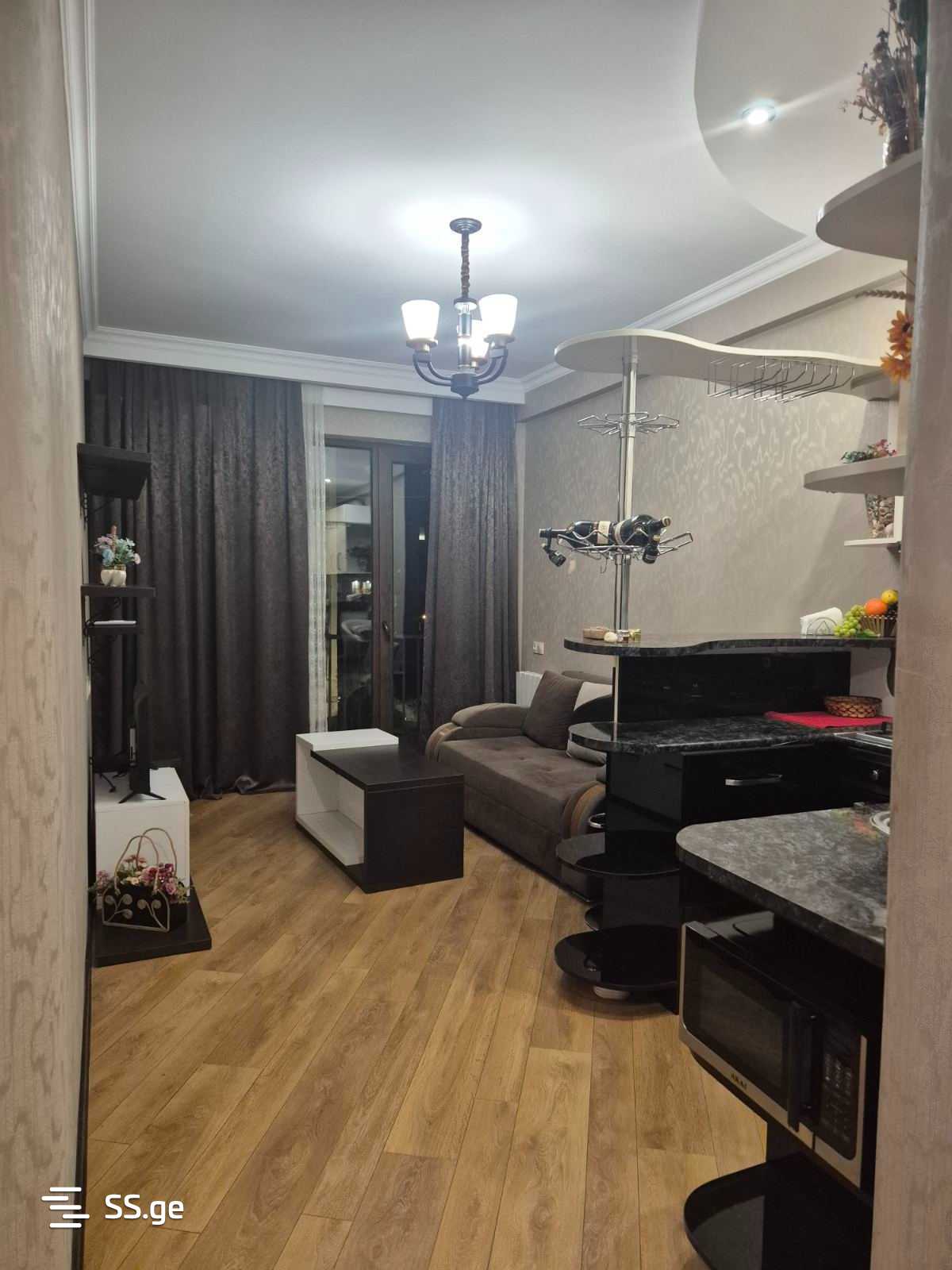 Комментарий: For rent: a two-room apartment in a newly built building. Located in Saburtalo, near Kazbegi Avenue, in the Shanghai neighborhood. With central heating, air conditioning, modern furniture and appliances, the apartment features built-in cabinets with storage, high ceilings, and all living conditions. In a quiet and peaceful area in the city center.