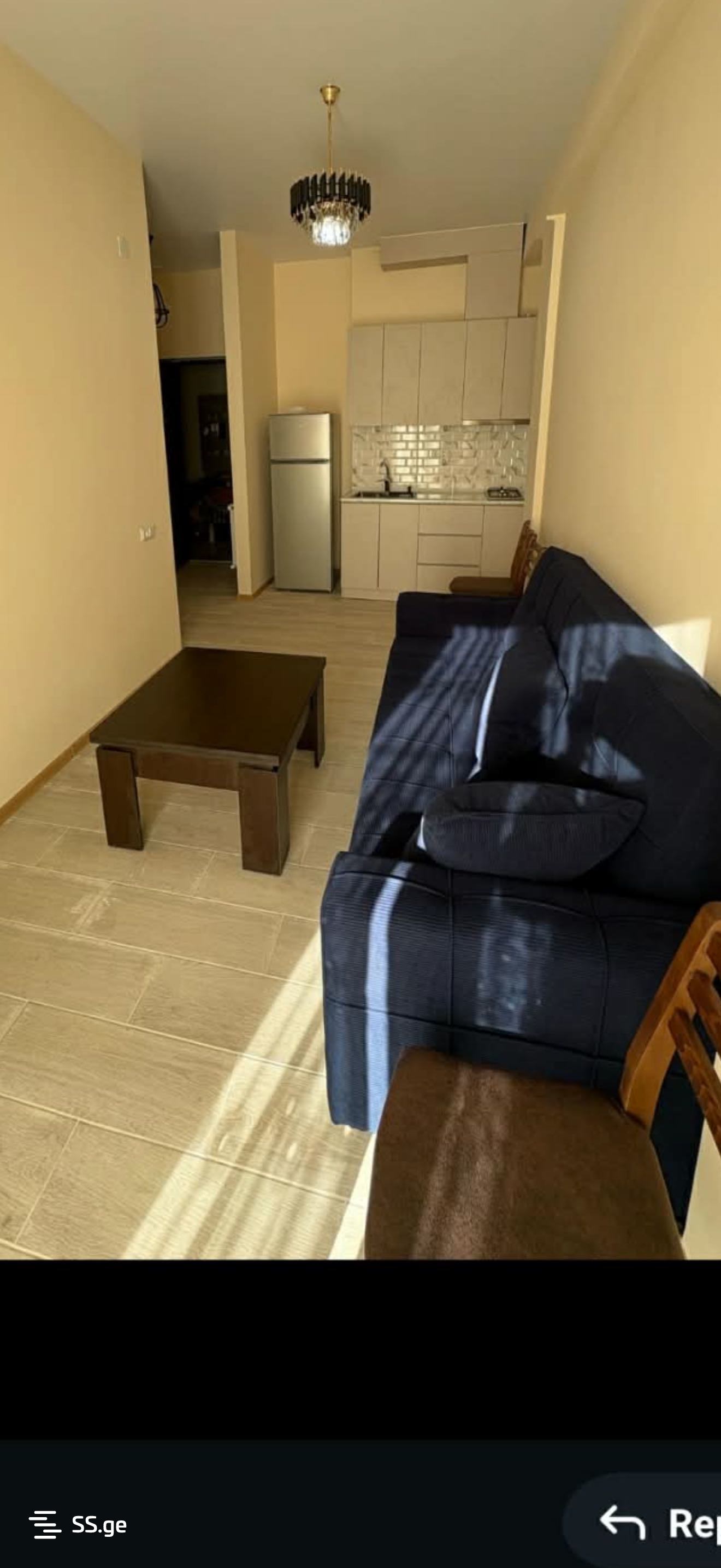 Сдается 2-комнатная квартира, студия, мебель, бытовая техника, центральное отопление, железная дверь, балкон, высокий первый этаж, агентство Ваар, цена 1000 л, дом расположен недалеко от метро Гоциридзе.