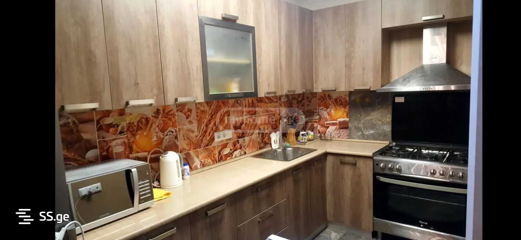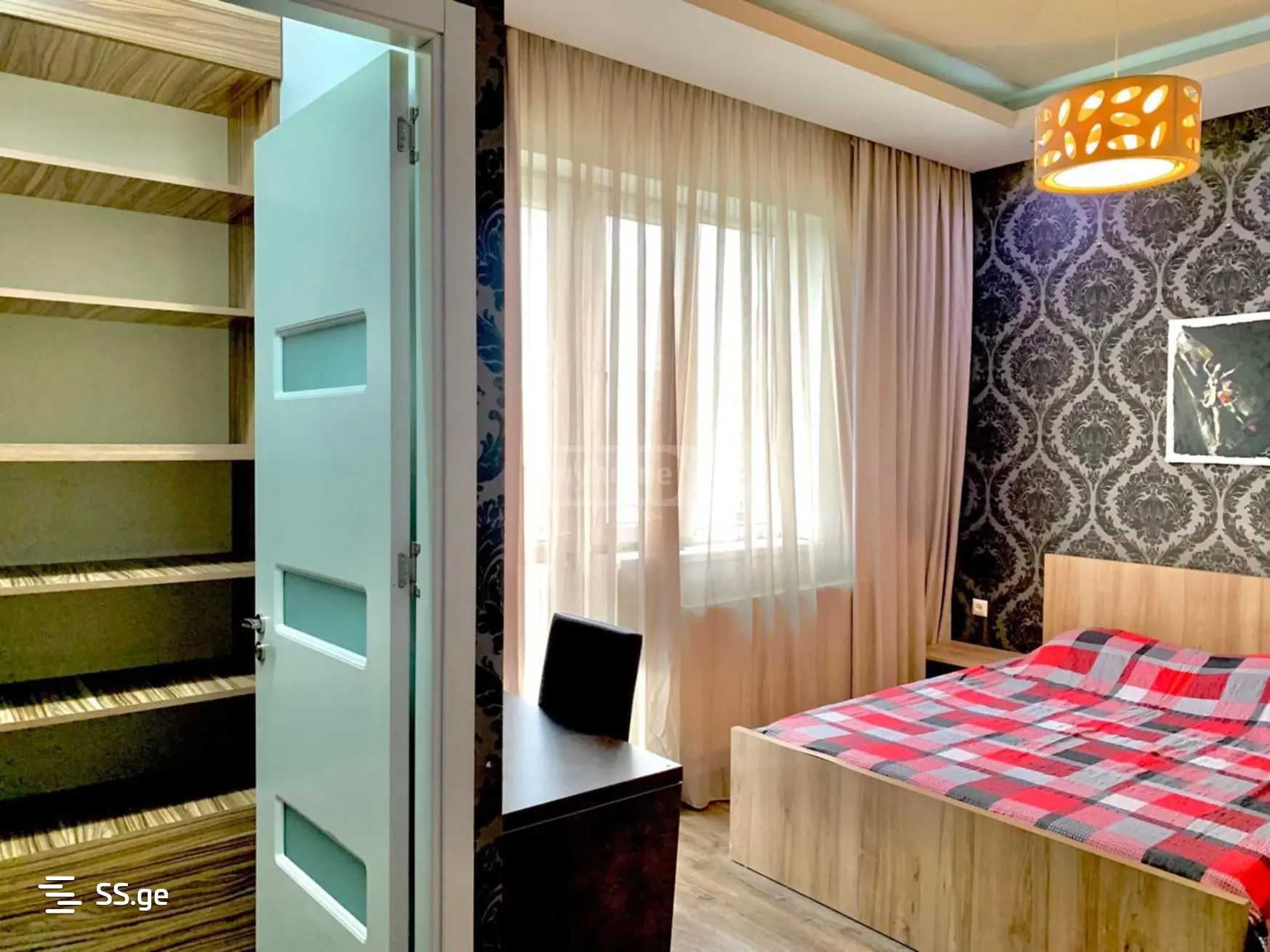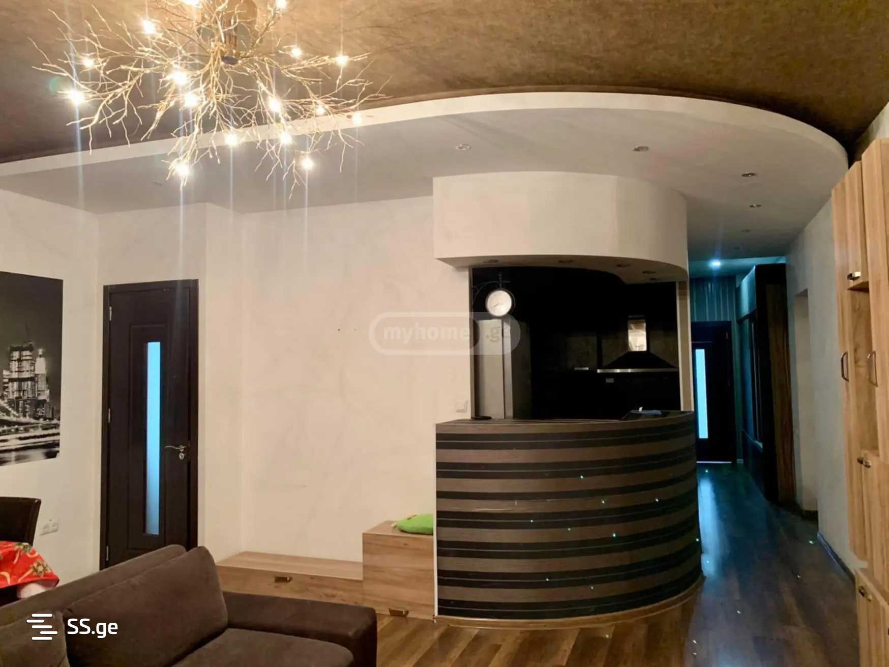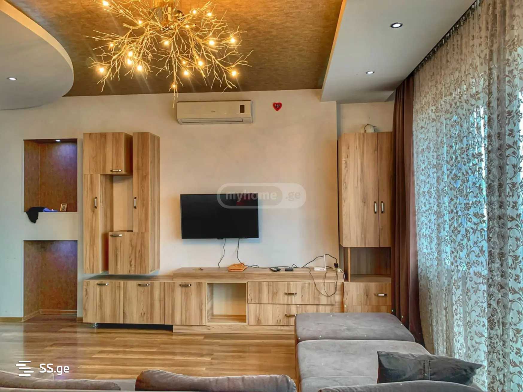 Комментарий: In Saburtalo, in the center of Tbilisi, a 4-room corner bright apartment is for rent. 40 sq m veranda with a beautiful view. With modern furniture and appliances, central heating. Free parking in the yard. $800