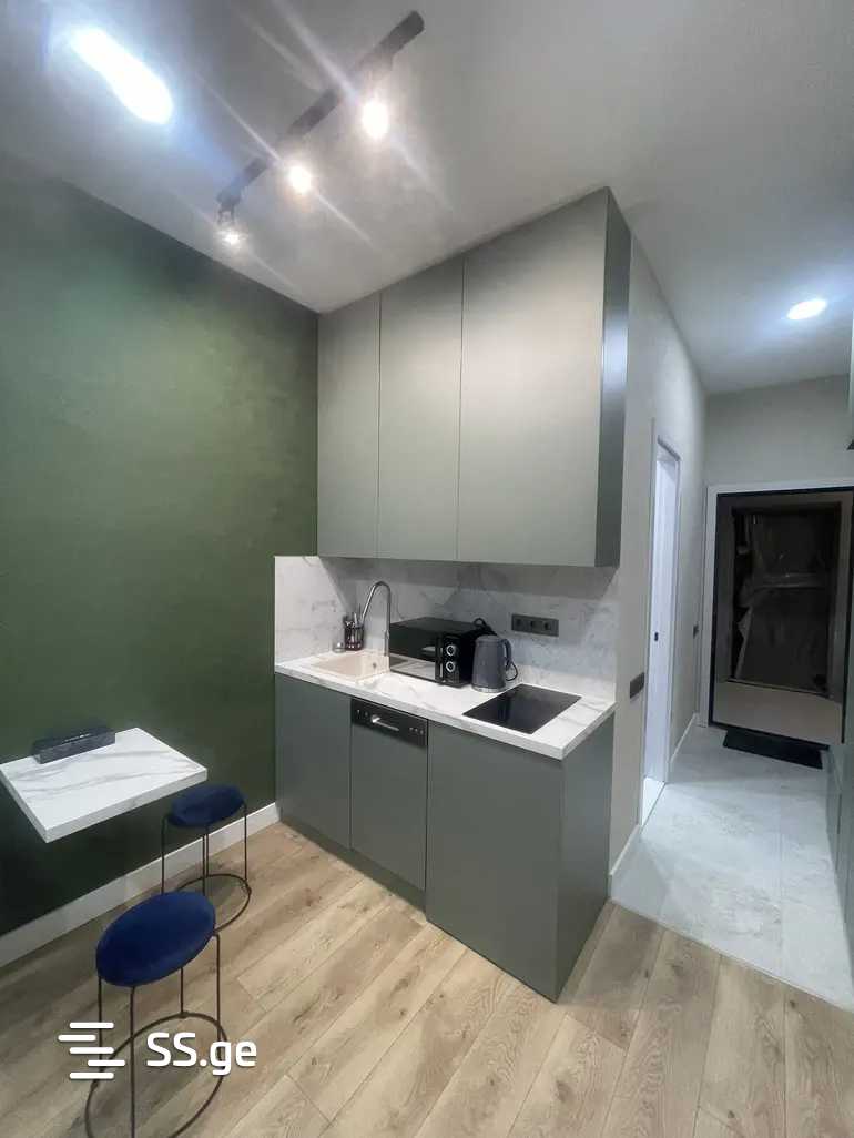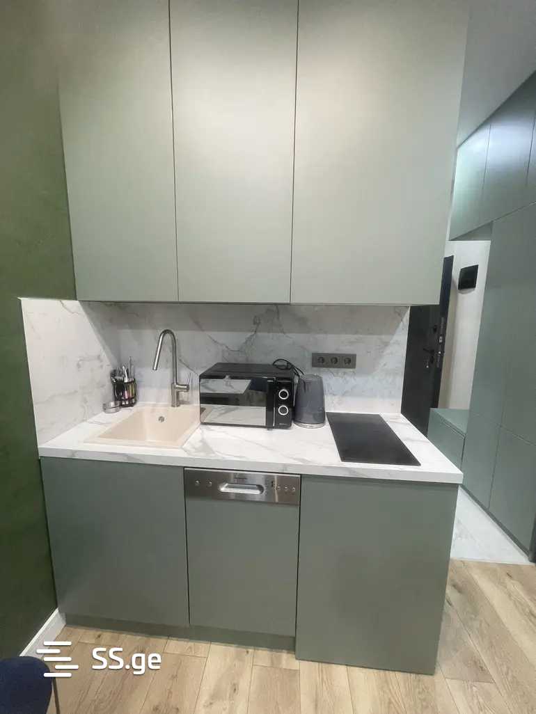 სრულად აღჭურვილი ტექნიკით (სარეცხი მანქნა, ჭურჭლის სარეცხი მანქნა SMART TV, ღუმელი, ჩაიდანი და ასე შემდეგ) და ავეჯი