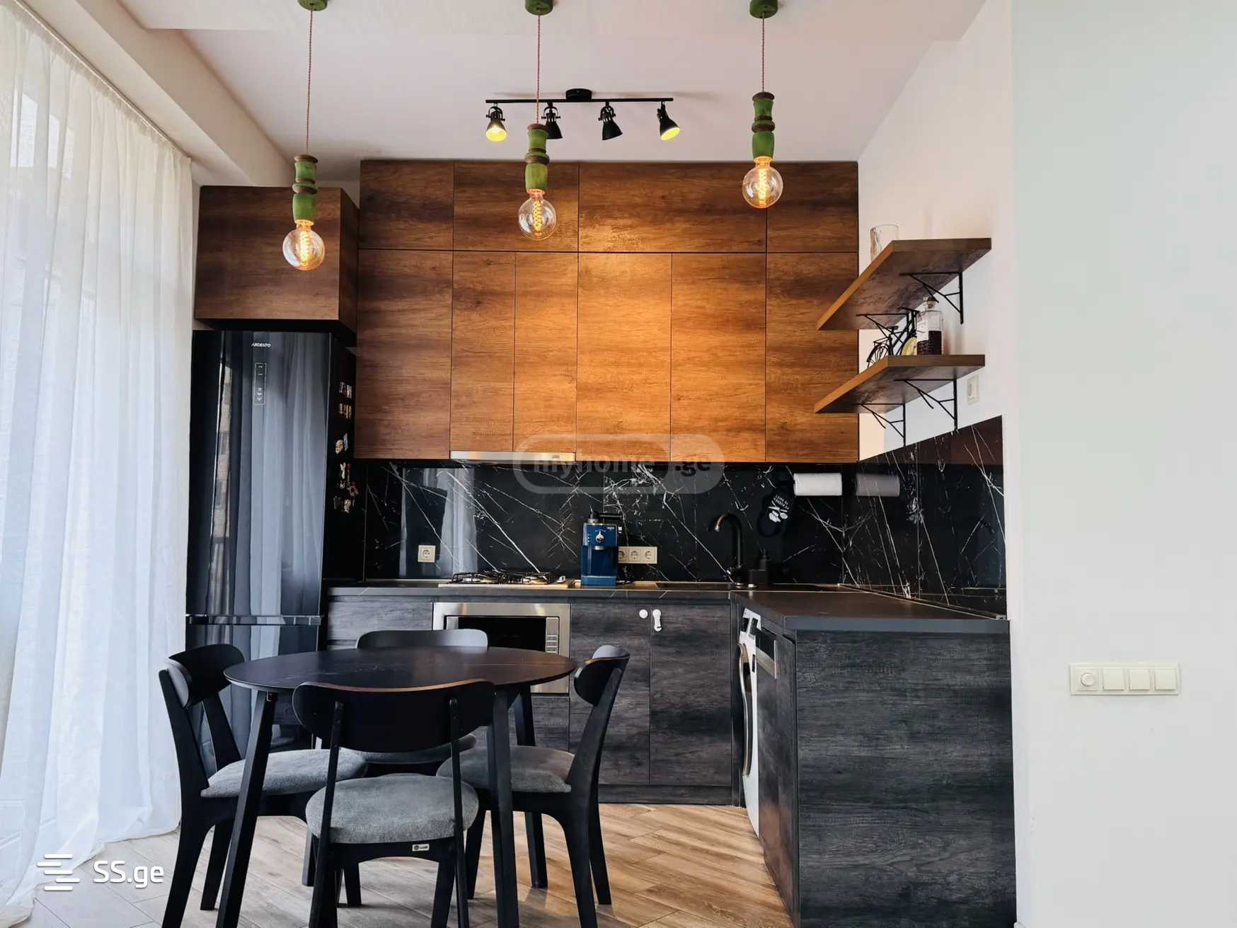 Сдается двухкомнатная квартира студийного типа на Нино Жвания, №8, полностью укомплектованная необходимой мебелью и бытовой техникой (стиральная машина, холодильник, плита, микроволновая печь, встроенная посудомоечная машина, кофемашина, кондиционер). Квартира уютная и комфортная, в тихом месте.