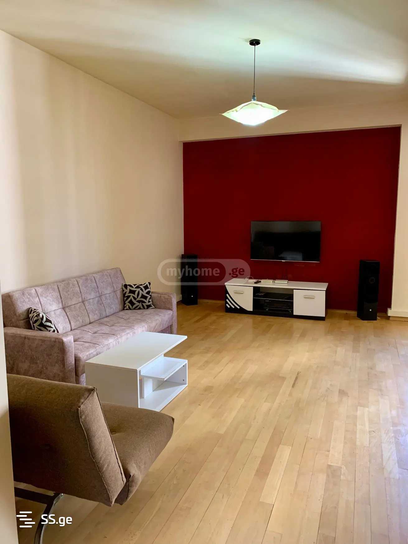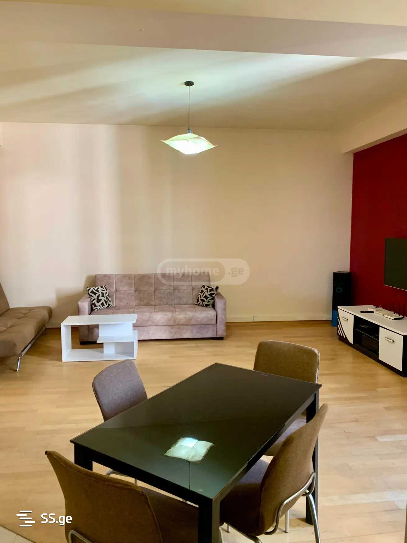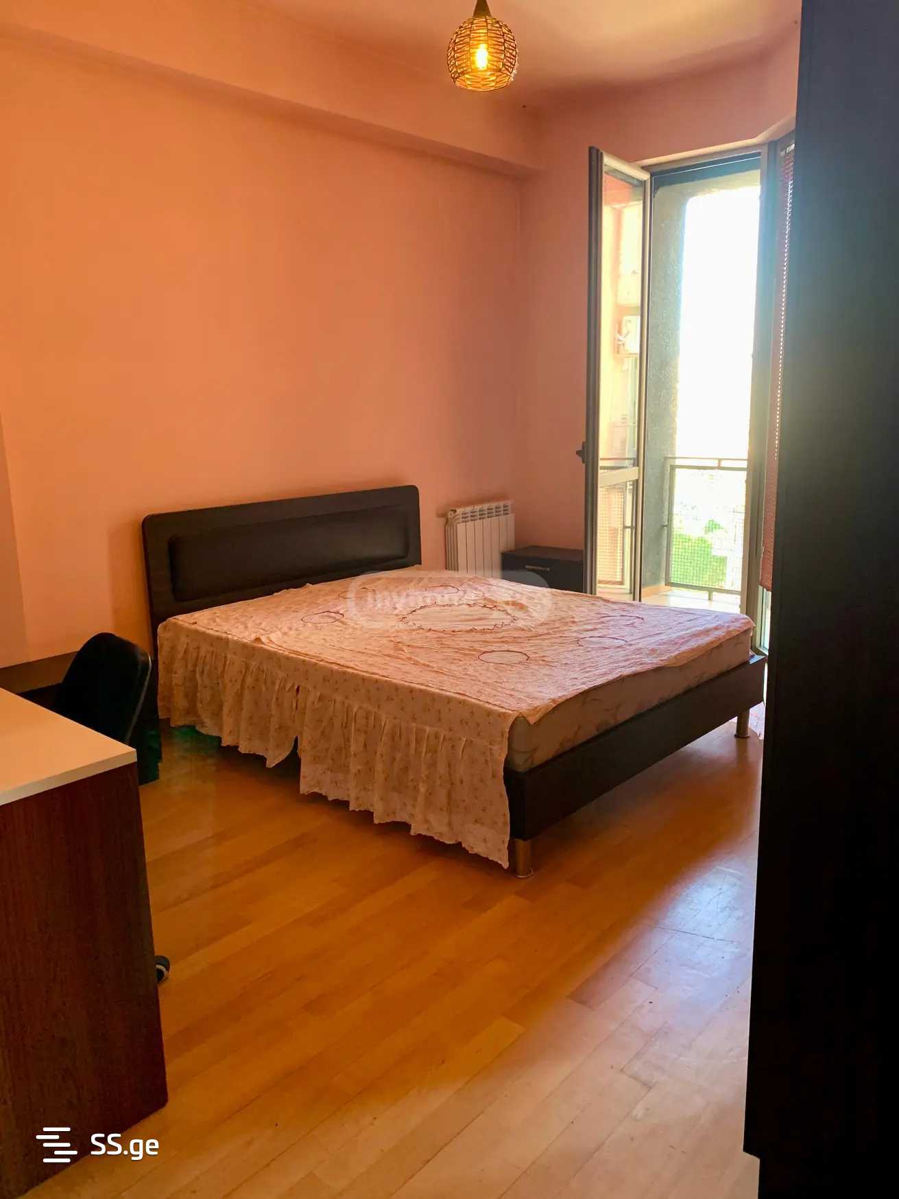 საბურთალო, ალ.ყაზბეგის გამზირზე, ახალაშენებულ კორპუსში სამ ოთახიანი ბინა ორი საძინებლით, ორი აივნით, ცენტრალური გათბობით, ნახევრად იზოლირებული სამზარეულოთი, ორი სველი წერტილით, სრული ავეჯითა და ტექნიკით.