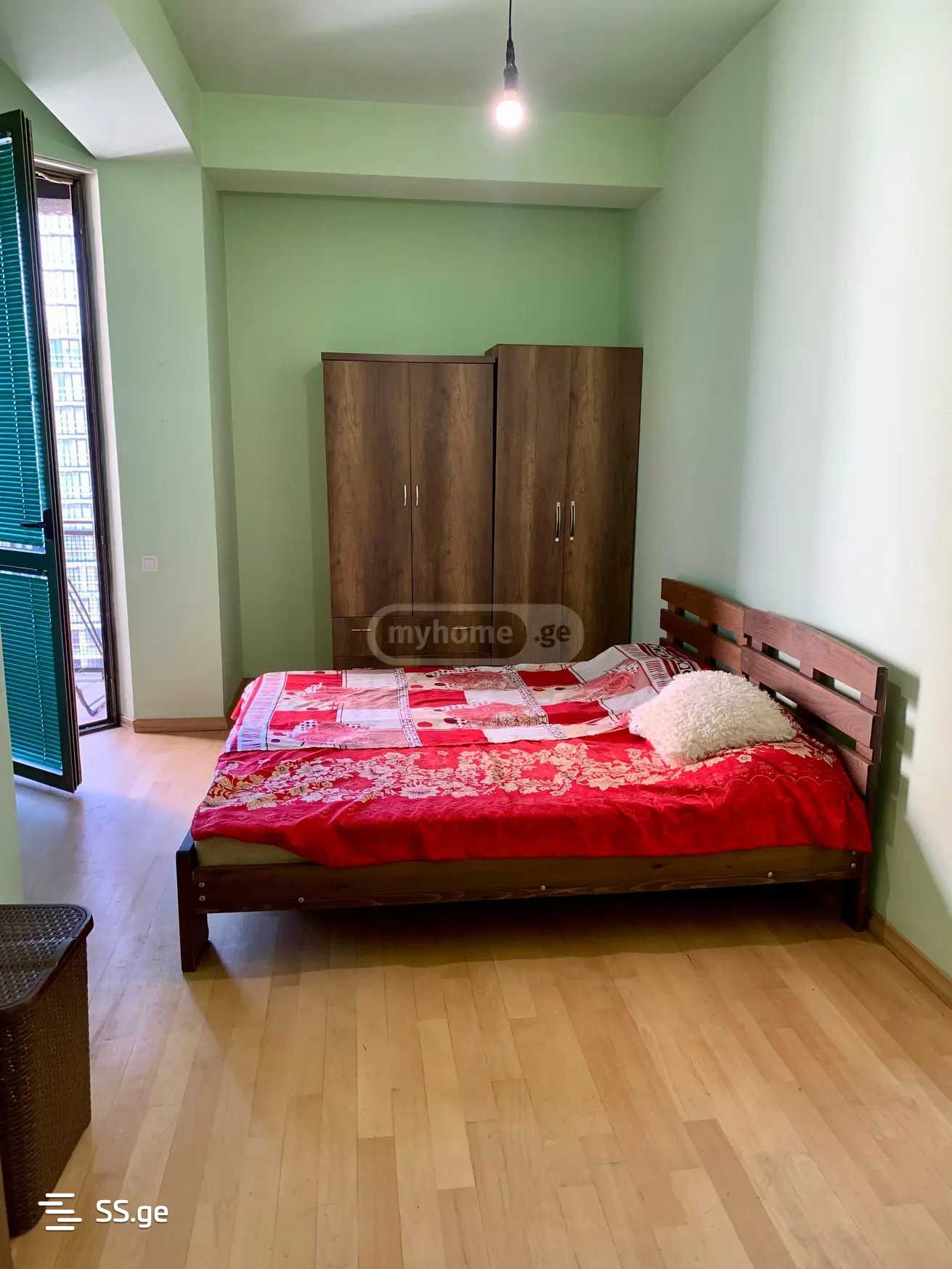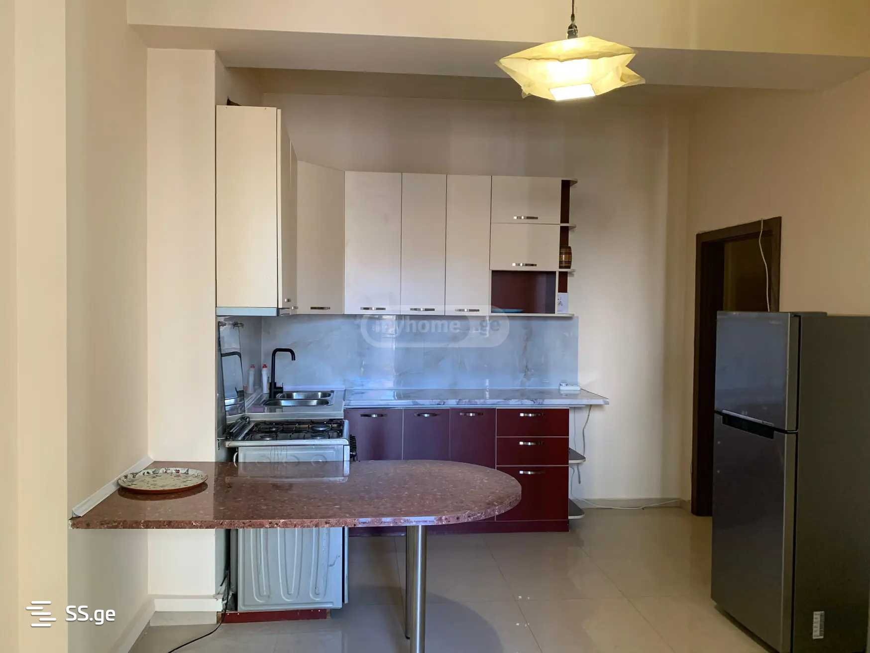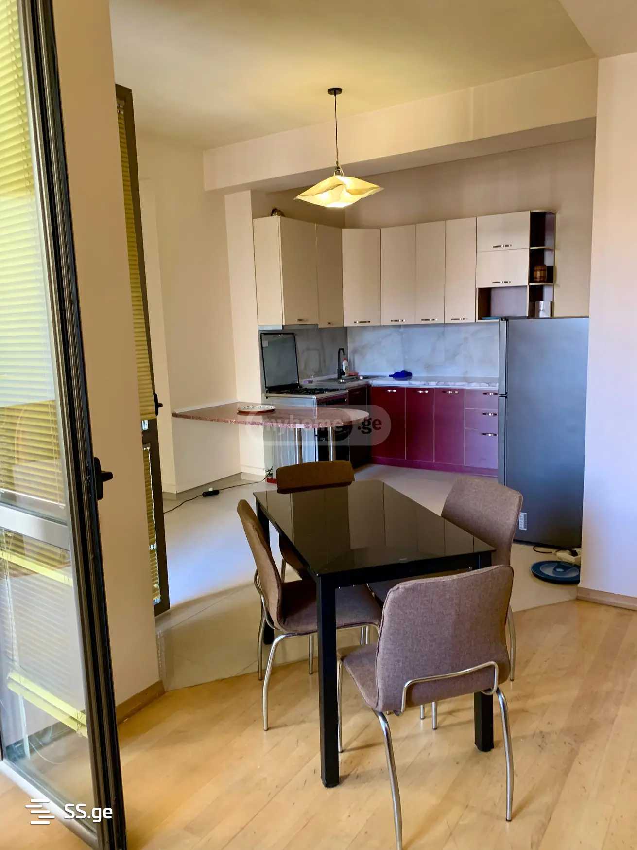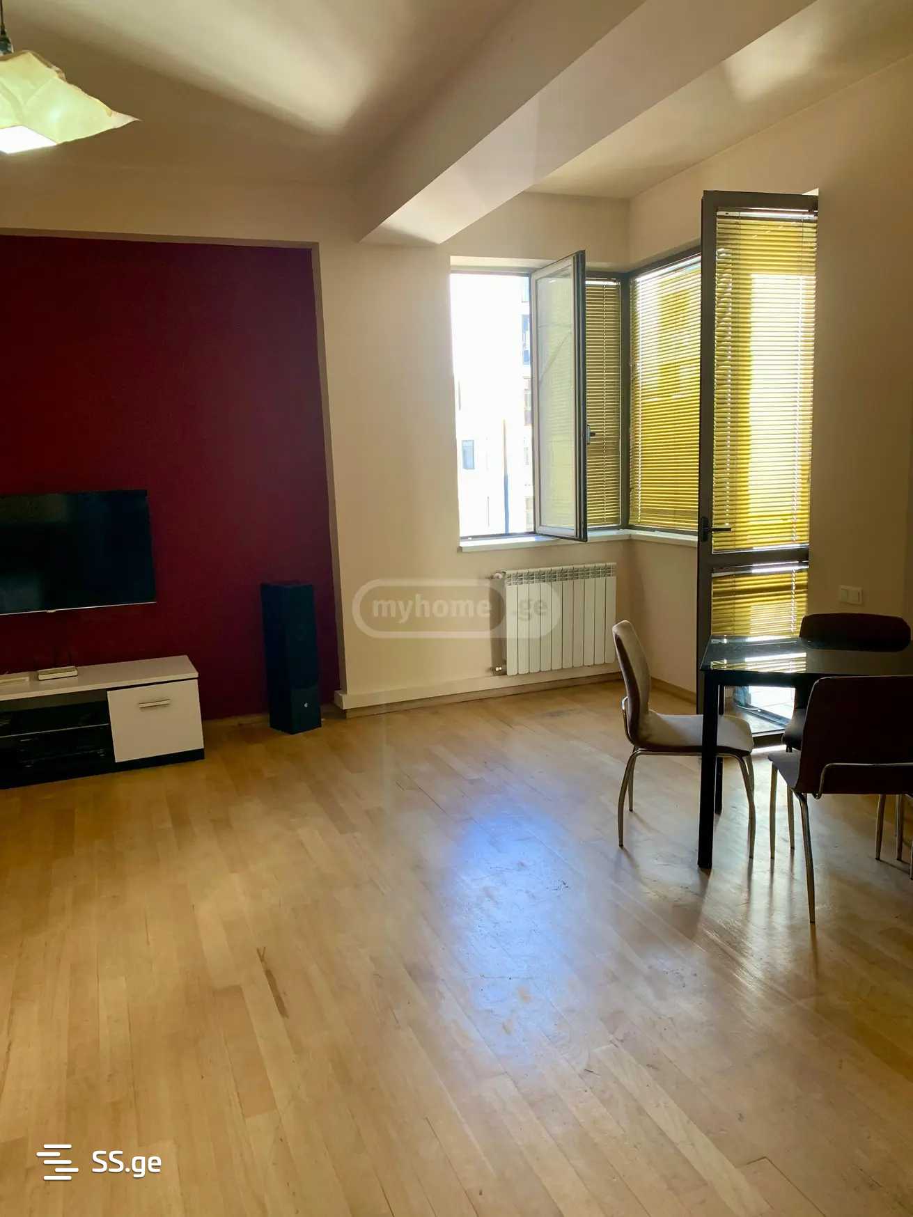 საბურთალო, ალ.ყაზბეგის გამზირზე, ახალაშენებულ კორპუსში სამ ოთახიანი ბინა ორი საძინებლით, ორი აივნით, ცენტრალური გათბობით, ნახევრად იზოლირებული სამზარეულოთი, ორი სველი წერტილით, სრული ავეჯითა და ტექნიკით.