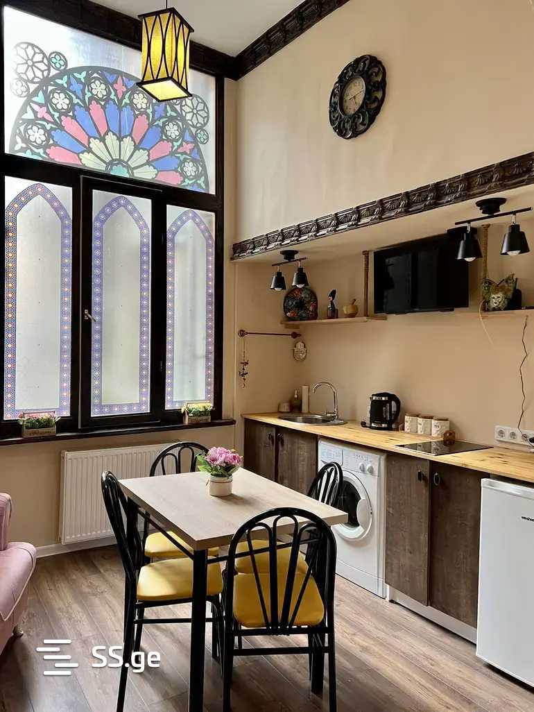 Комментарий: ქირავდება სოლოლაკში სტუდიოს ტიპის ბინა, იტალიურ ეზოში. თავისუფლების მოედნიდან ფეხით 5 წუთის სავალ გზაზე. ბინა აღჭურვილია ავეჯითა და ტექნიკით, აქვს ასევე საკმაოდ დიდი სათავსოები. არის მყუდრო, ნათელი და სუფთა ბინა. ფართი: 30 კვადრატული მეტრი.