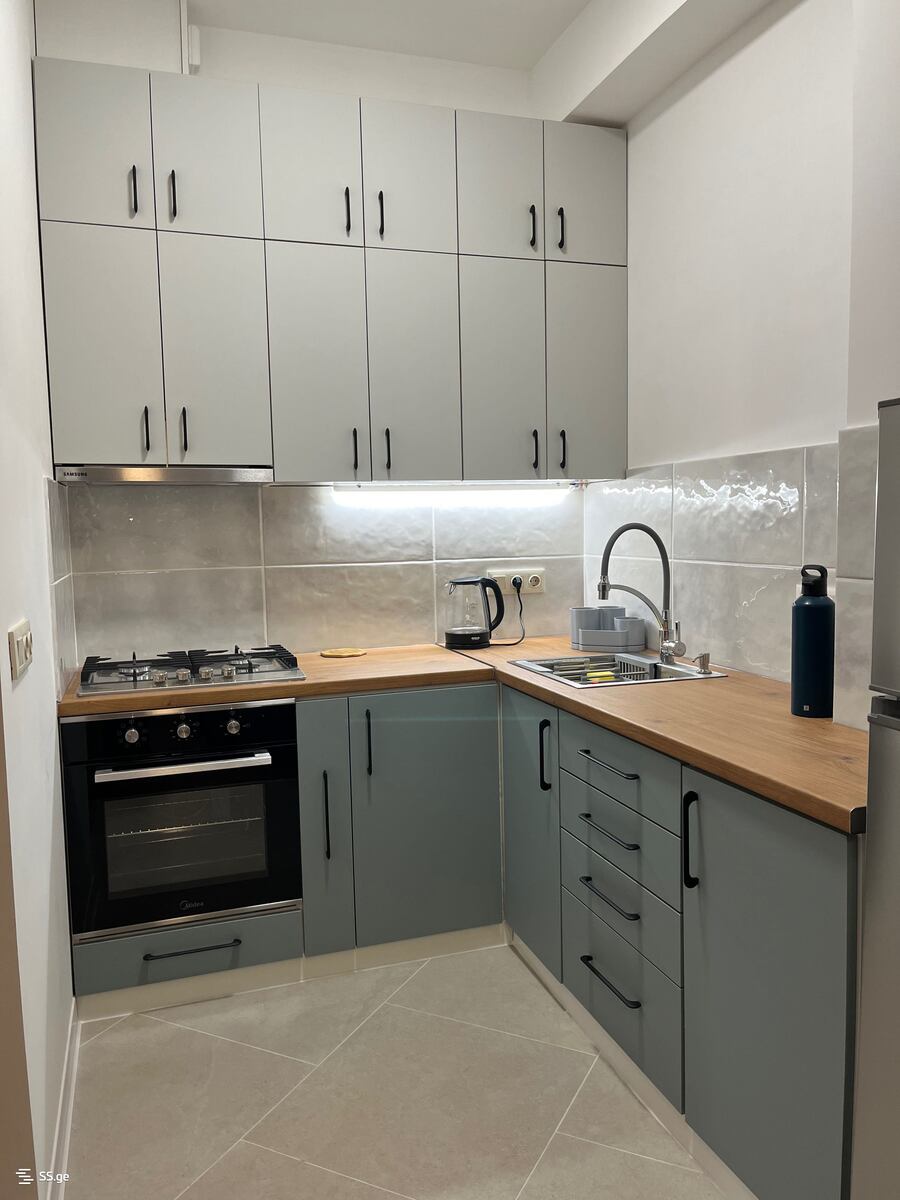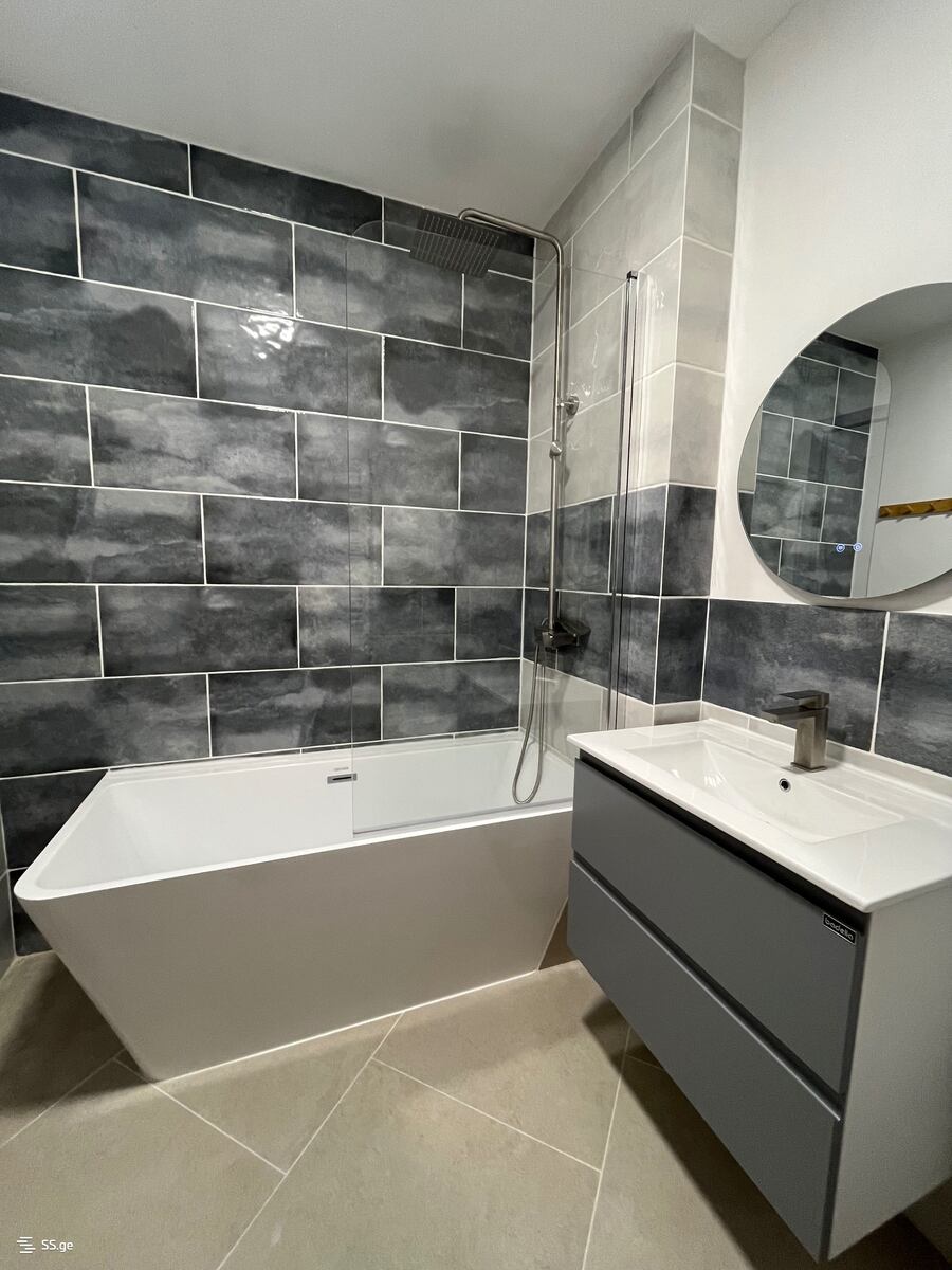 Grocery stores are 2-minute walk, Akhmeteli Metro is 10-minute walk away.