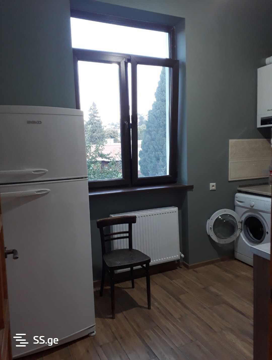Комментарий: Newly renovated, clean two-room apartment for rent on Tsotne Dadiani Street in front of the park, with a quiet yard, beautiful view. The apartment is located 2 minutes walk from the bridge. Equipped with furniture, washing machine, refrigerator and central heating. Price 1350 GEL. Tel: 591292226; 591939779