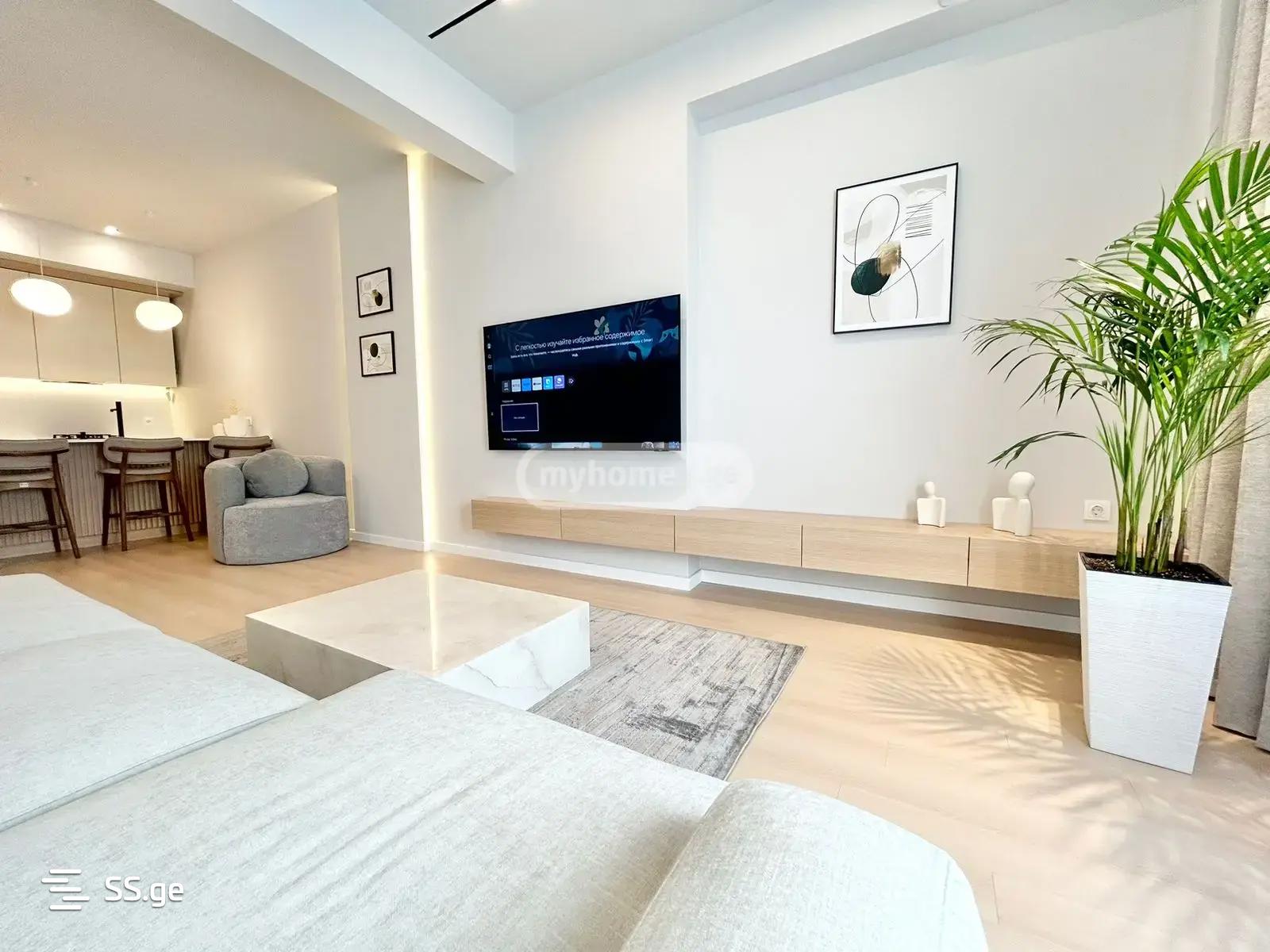 62 кв.м. Сдается 2-комнатная квартира в Авалишвили, Outlook Vake! Квартира полностью с новым ремонтом, имеет отдельную спальню, санузлы, большой балкон, мебель, бытовую технику, отопление, кондиционер, идеальный вариант для проживания!