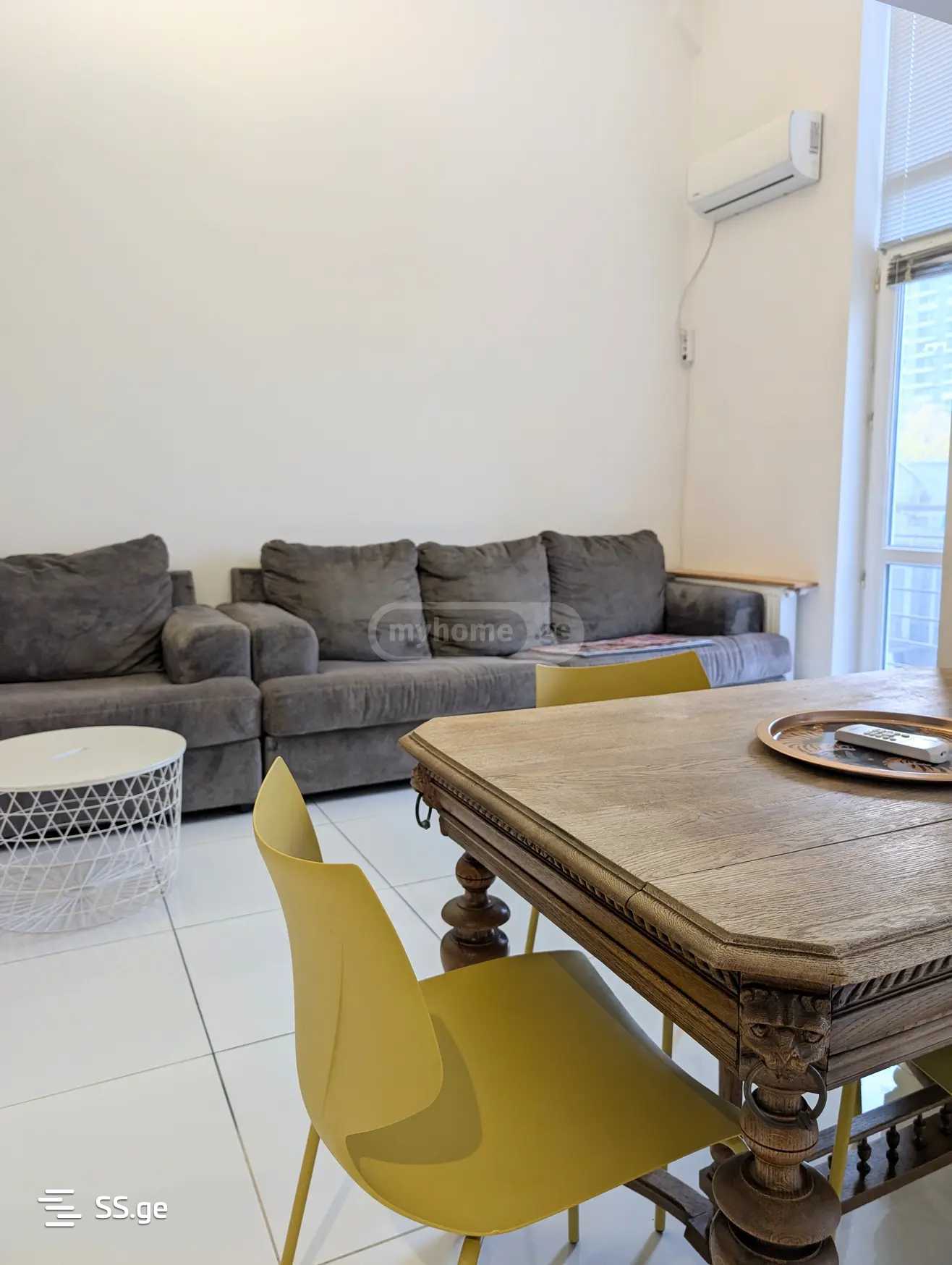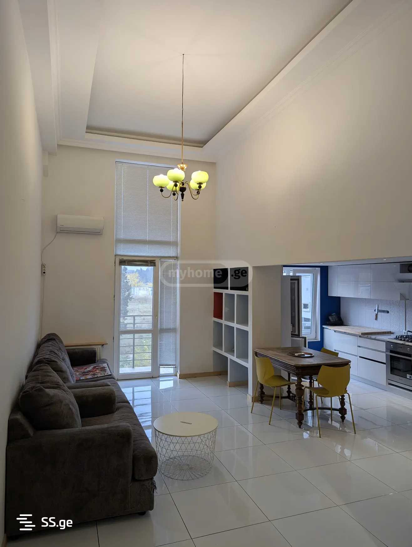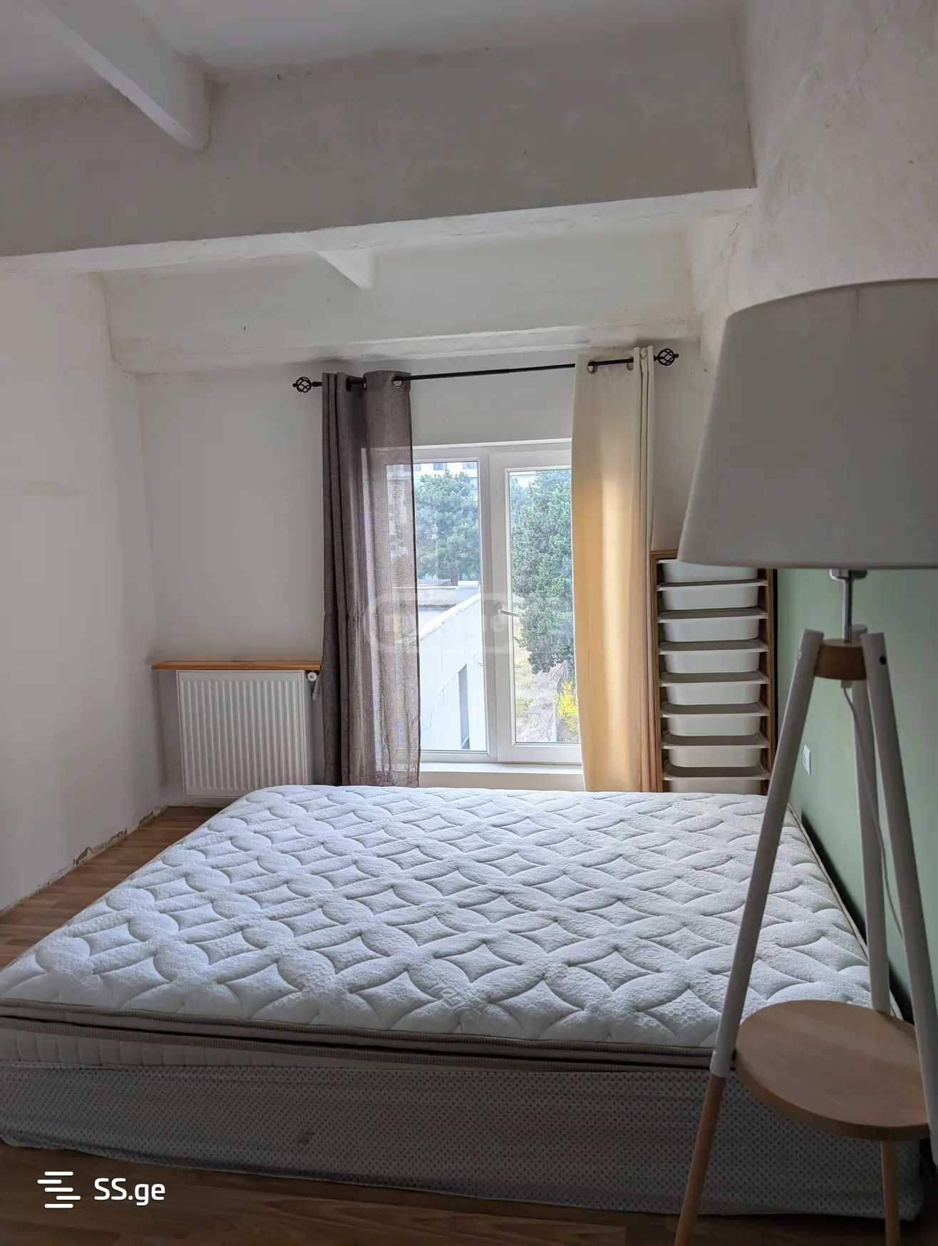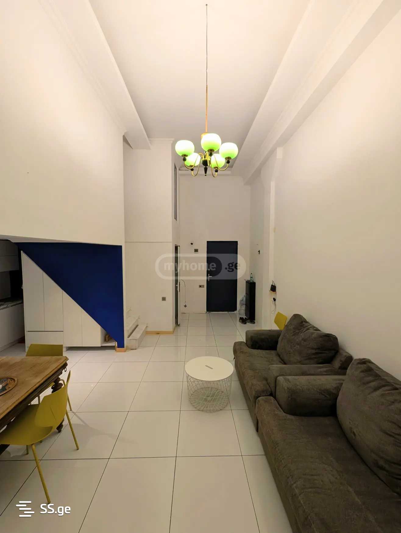 Сдается квартира 65 м² на улице Нодара Бохуа, старая постройка. Нестандартная квартира с высокими потолками, мезонин. На первом этаже гостиная студийного типа, большая кухня, санузел. 1 спальня в мезонине и дополнительная небольшая комната со дополнительным освещением. с мебелью и техникой.
