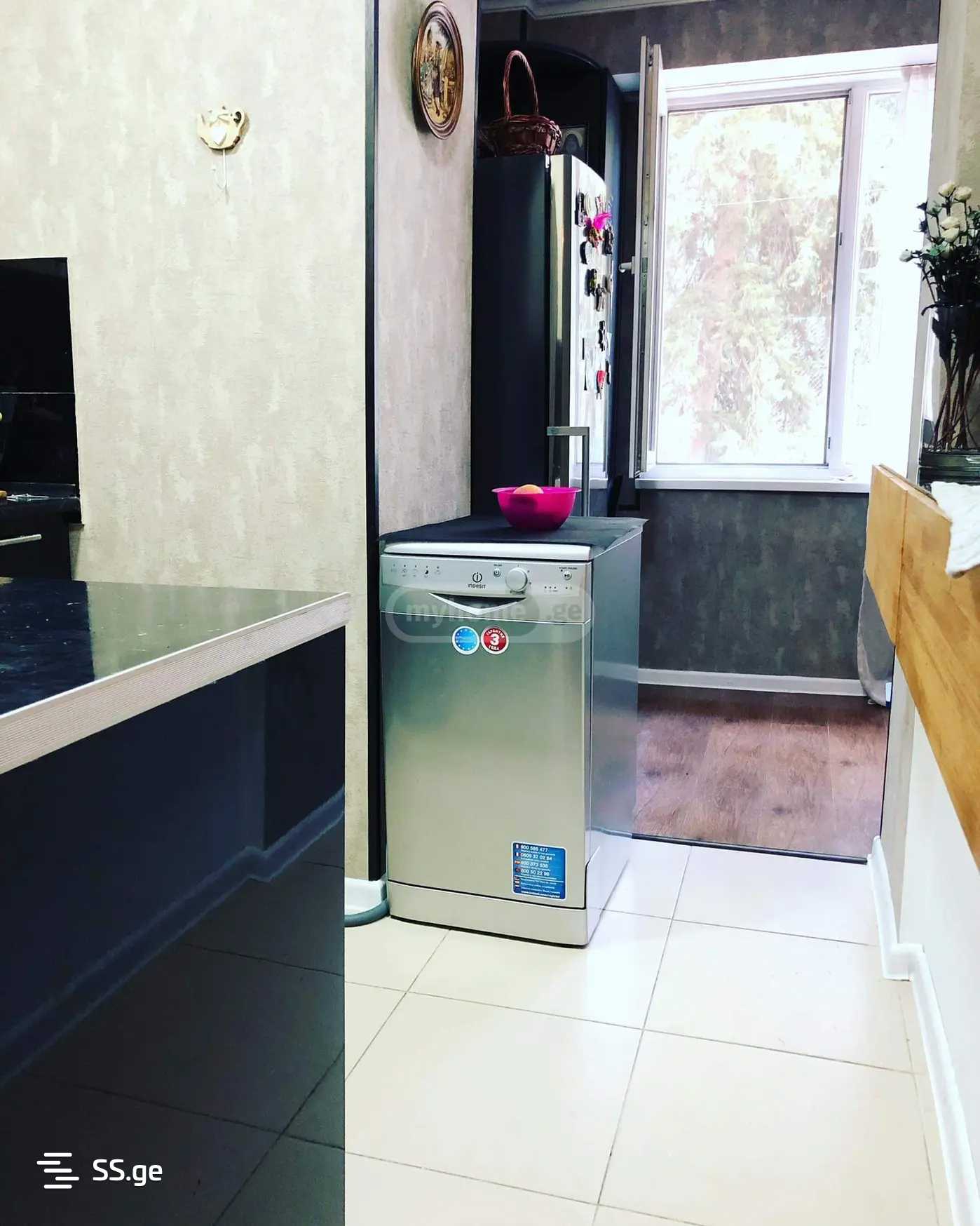ცენტრალური გათბობით,ჭურჭლის სარეცცი მანქანით და ავეჯით.