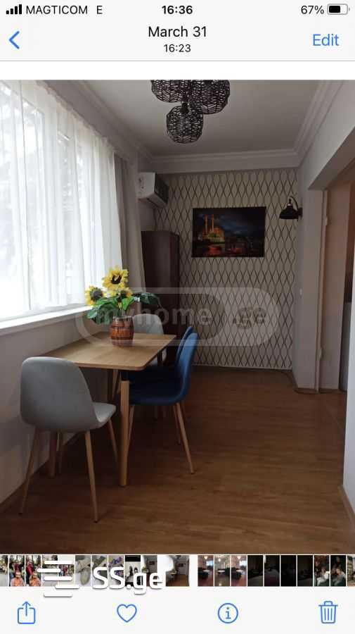 Комментарий: ქირავდება 2 ოთახიანი ბინა + ლოჯით, მეტრო "უნივერსიტეტთან" ძალიან ახლოს, მყუდრო უბანში. ბინაში არის ყველა საჭირო ტექნიკა და ავეჯი.