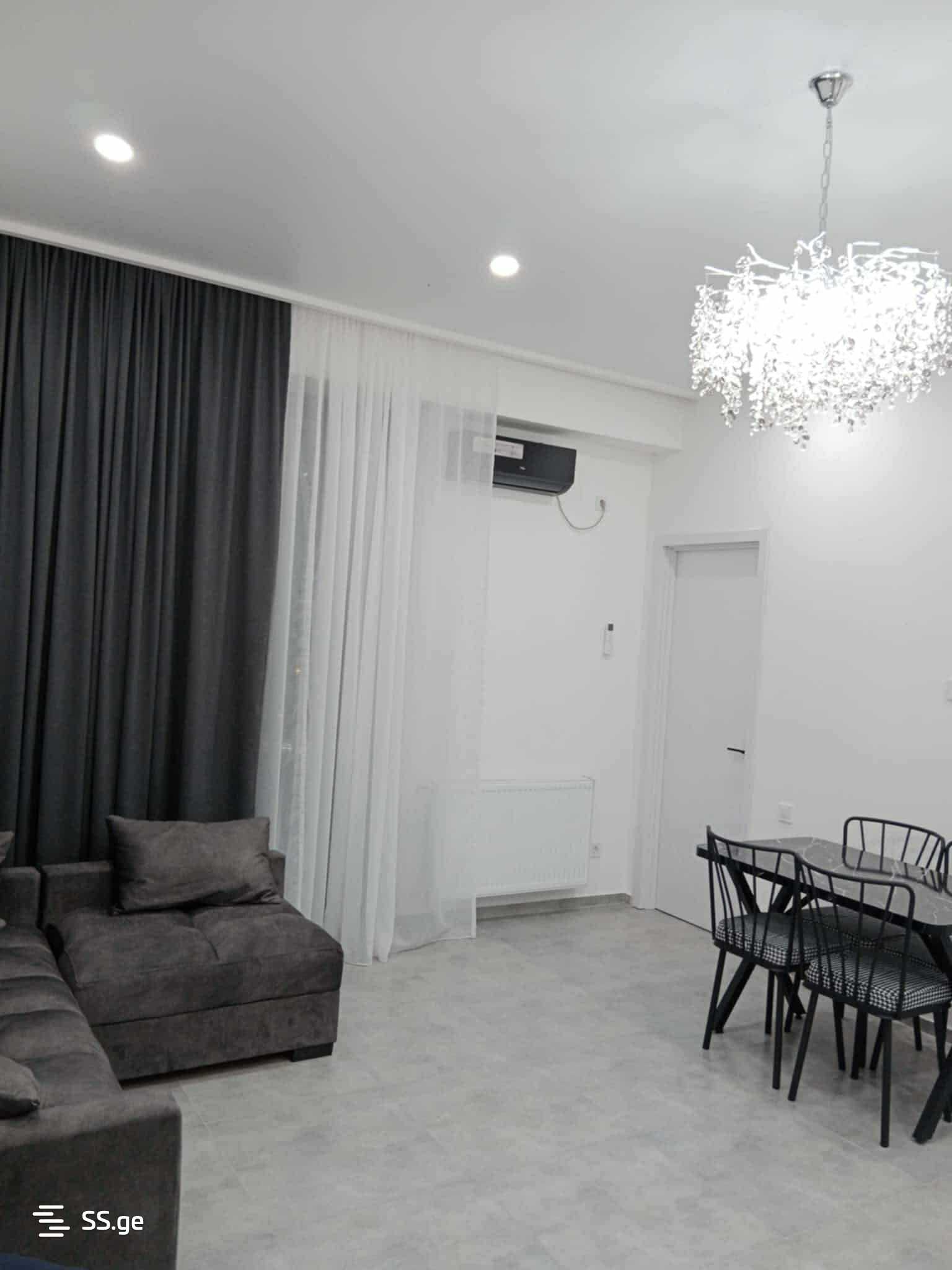 Комментарий: In Isani, near Astoria, a newly built apartment on the 15th floor of an 18-story building is rented out, 64 sq.m., renovated, uninhabited. With furniture and appliances.