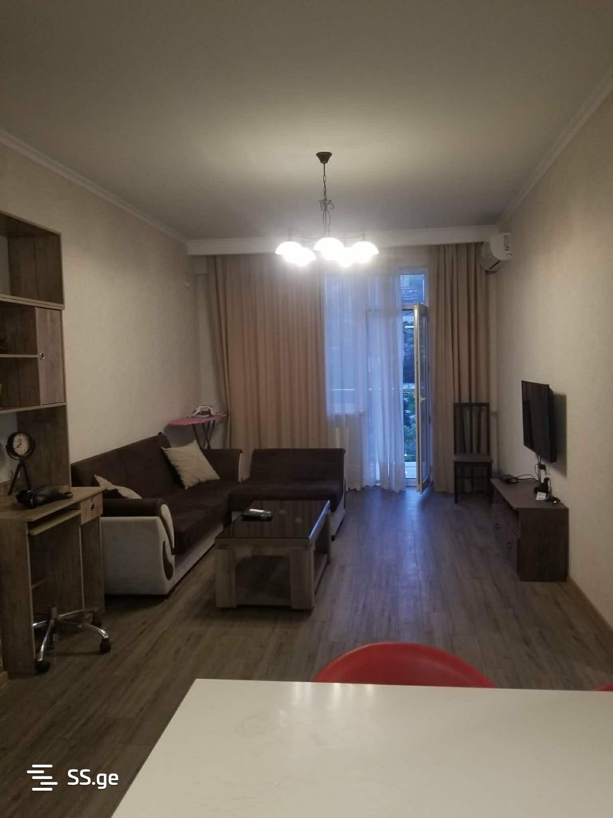Комментарий: For rent is a 2-room apartment in Saburtalo, in front of City Mall. The apartment has 1 bedroom, a studio-type living room, a balcony, and is fully furnished with all furniture and appliances. It is newly built, secured, and has a well-maintained entrance.