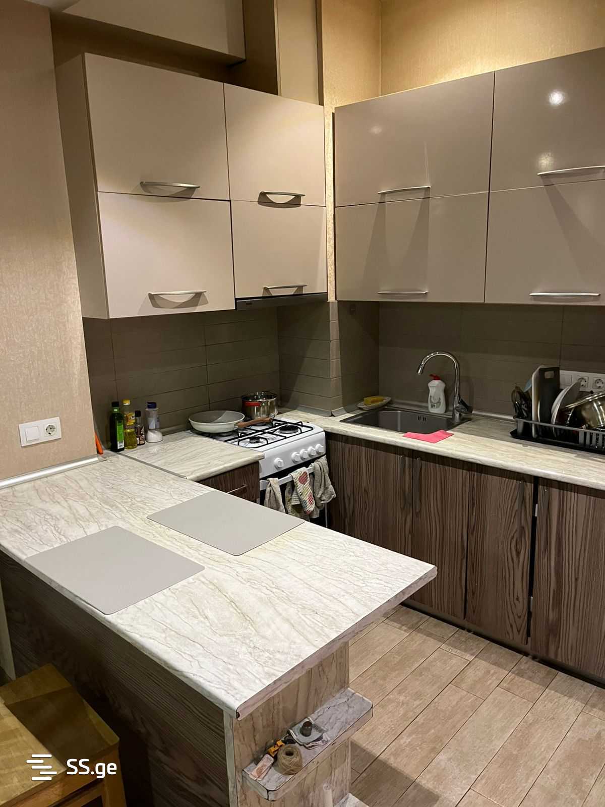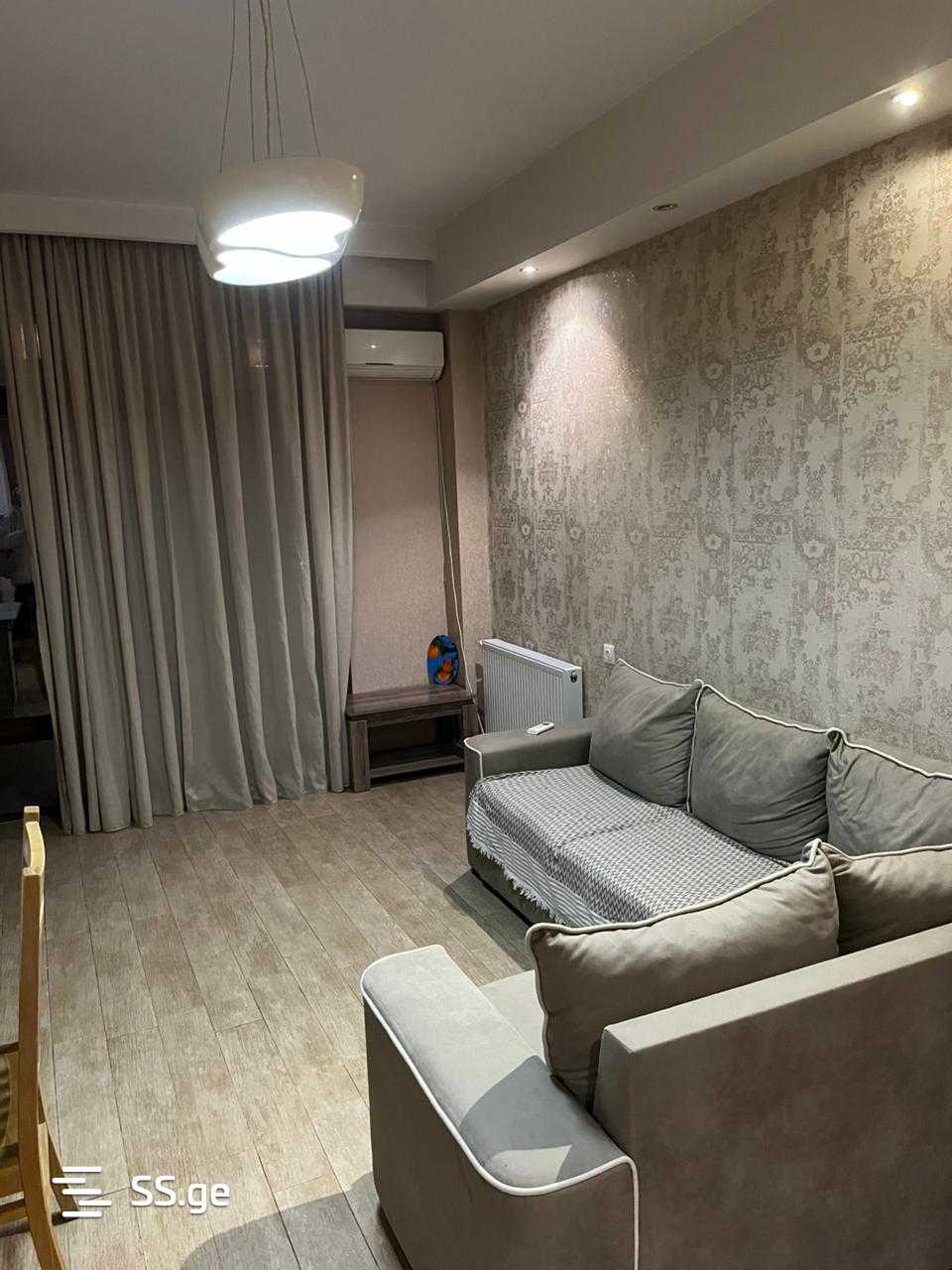 Комментарий: For rent in Saburtalo, in the best location, on the parallel street to Mitskevichi, in Tsagereli, in a newly built good building, a 2-room, renovated, bright sunny apartment, with 1 isolated bedroom, a large living room studio, a large veranda, central heating, with all kinds of furniture and appliances, with air conditioning.