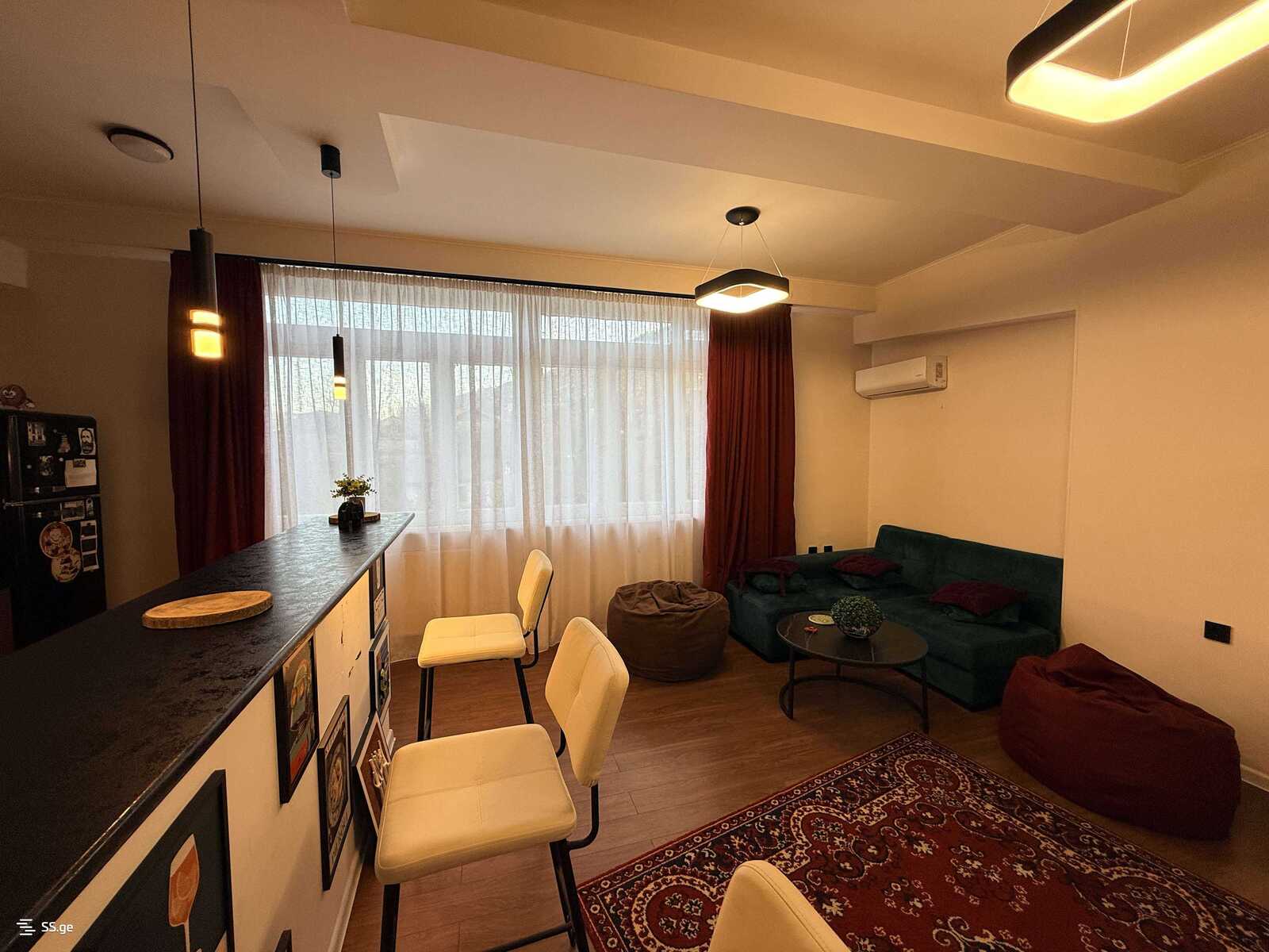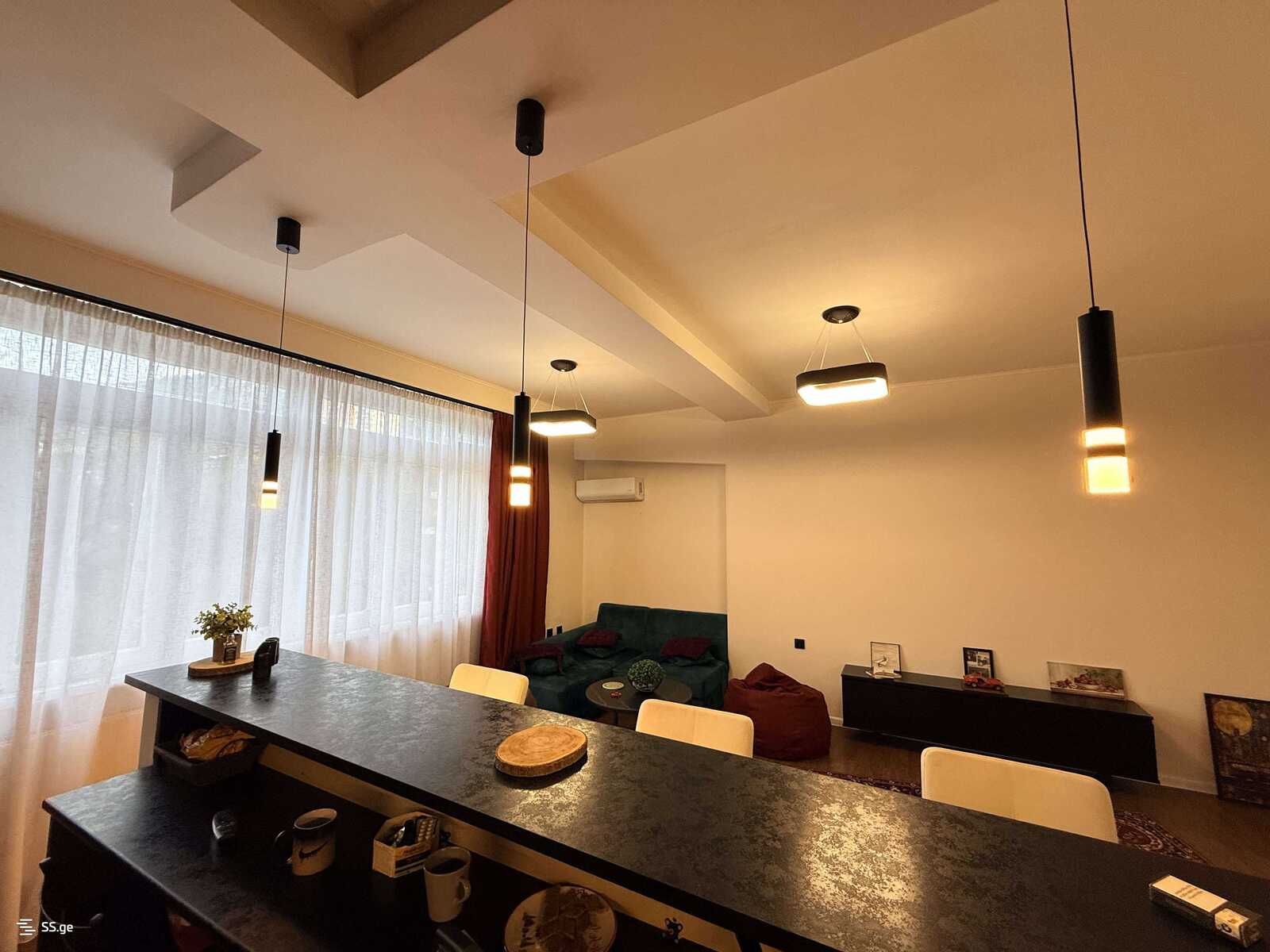 Сдается в Ваке, улица Нино Жвания №12, 3-комнатная квартира с гостиной студийного типа и камином. В квартире 2 спальни, 1 ванная комната и балкон с прекрасным видом. Квартира с новым ремонтом, оборудована центральным отоплением, полностью меблирована мебелью и бытовой техникой. Вход охраняется чиповой системой. Возможно проживание с маленькой собакой под залог. ?Цена