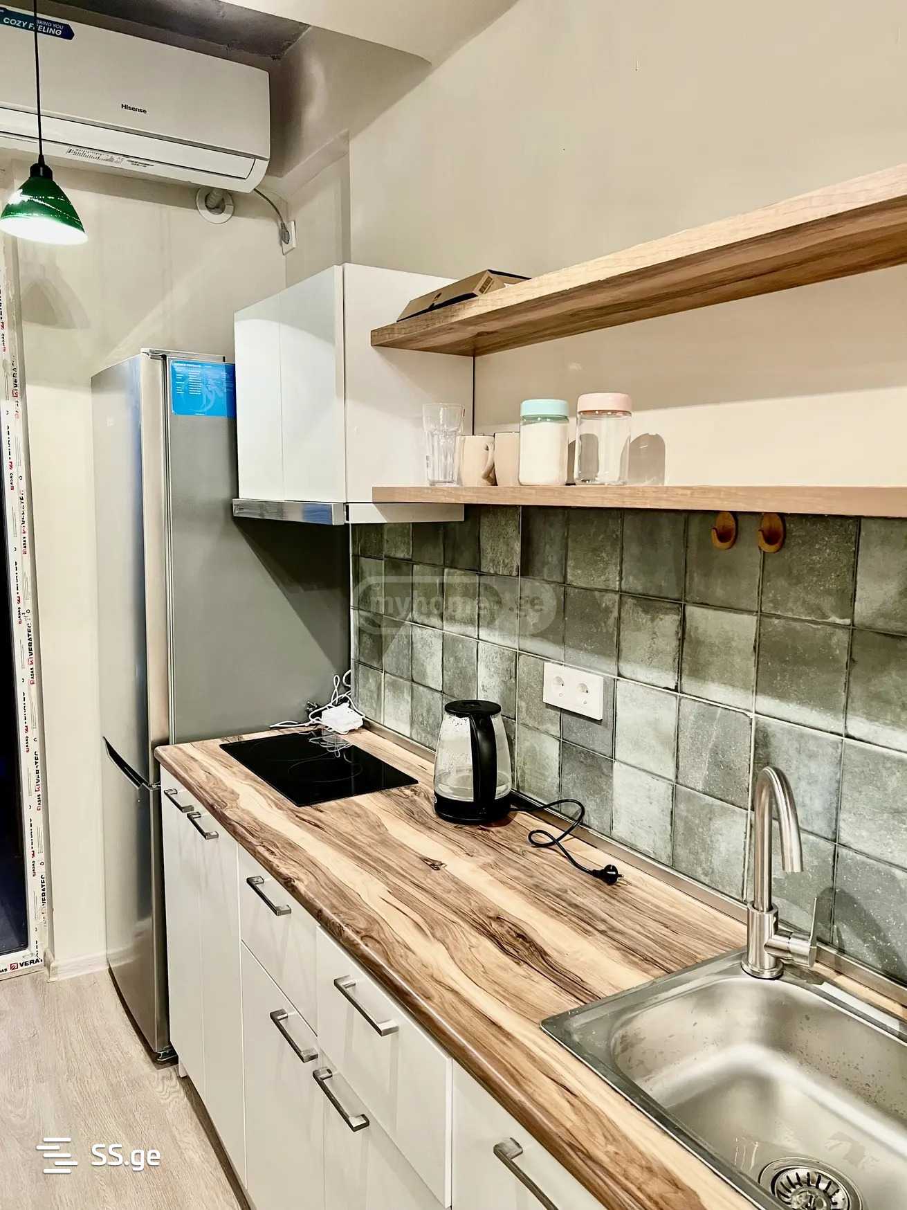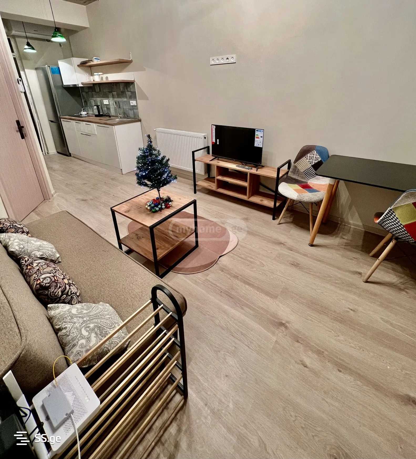С 15 января!!! Сдается в аренду, Диди Дигоми, нежилая квартира-студия, с отдельной спальней, мебелью, техникой, центральным отоплением, кондиционером. Здание обслуживается двумя лифтами, охраной, парковочным двором. Из квартиры потрясающий вид, рядом школа, сад, за поворотом от квартиры автобусная остановка, сетевые рынки, аптека. Цена