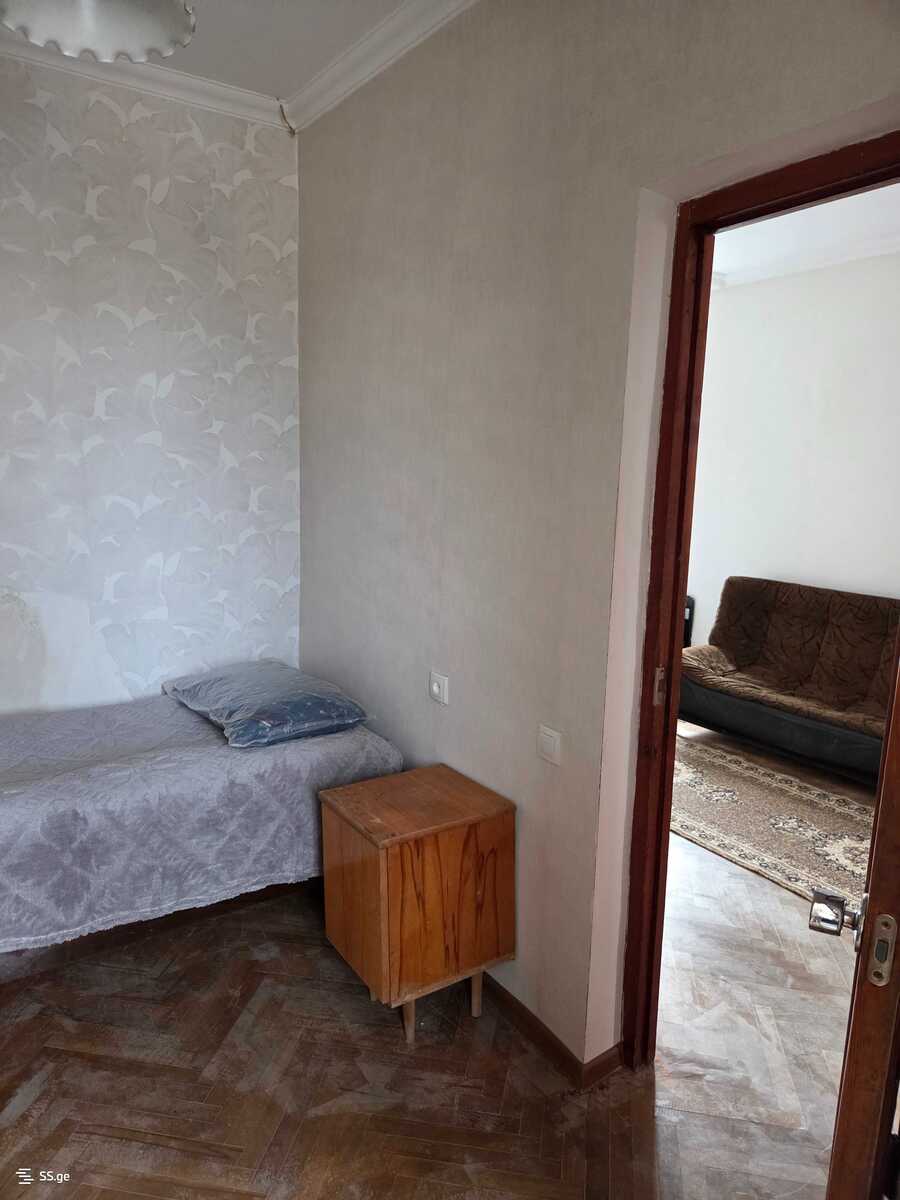 Сдается в 3-м микрорайоне Мухиани, на проспекте Нонешвили, на 9 этаже дома, 2 небольшие спальни, с мебелью и техникой, работает лифт. 10 минут пешком от метро. Оплата за один месяц. Я владелец.