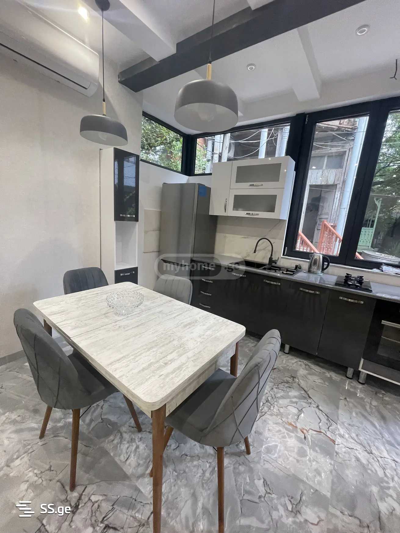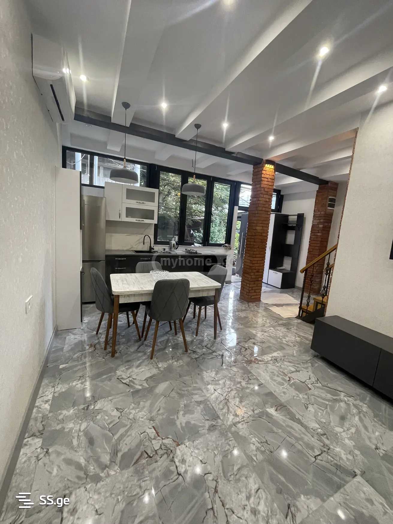 Недавно построенная и отремонтированная двухэтажная квартира в итальянском дворике. Необитаемый. С мебелью и техникой. Великолепный. На первом этаже кухня-студия, гостиная и санузел; на втором этаже спальня с большими шкафами. Вид на двор. Вид на улицу. Яркий. Уютный.