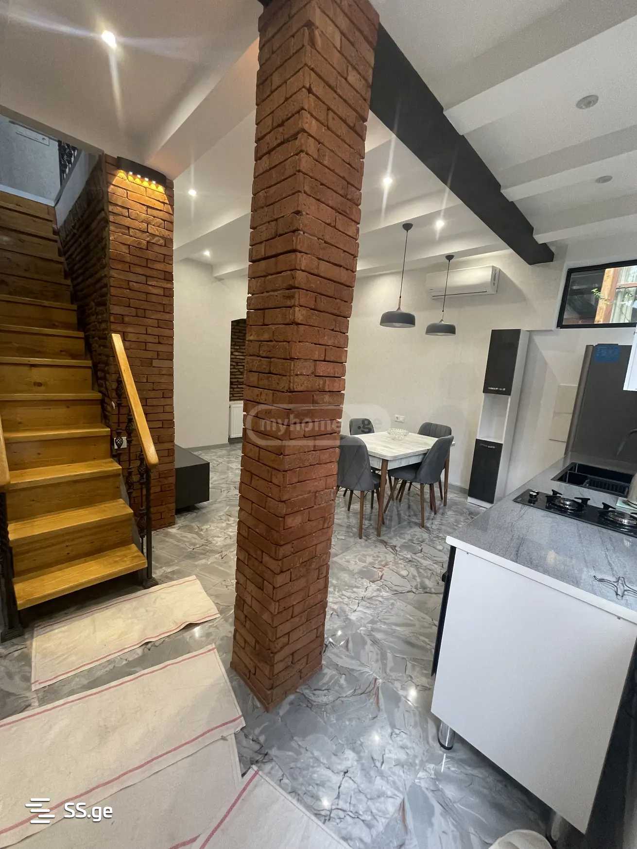 Комментарий: Newly built and renovated two-story apartment in an Italian courtyard. Uninhabited. With furniture and appliances. Gorgeous. On the first floor, a studio-type kitchen, living room, and bathroom; on the second floor, a bedroom with large closets. View of the yard. View of the street. Bright. Cozy.