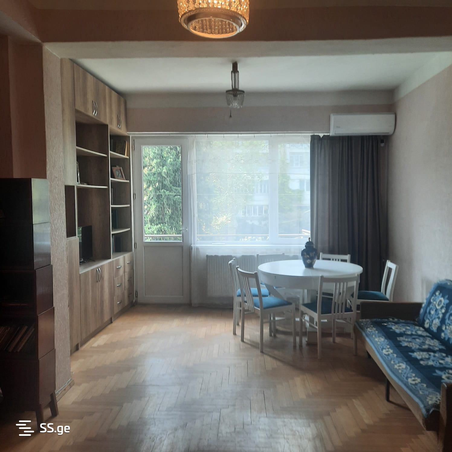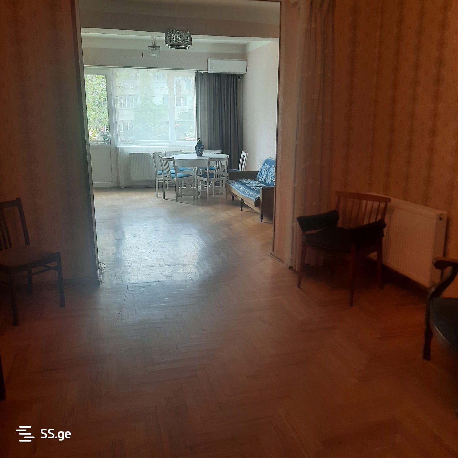 Комментарий: Urgently!!! An apartment for rent in Saburtalo, on Al. Kazbegi Avenue, in a 5-room apartment on the 3rd (8th) floor of an old building with an area of 100 sq.m. The bathroom and kitchen are renovated, while the bedrooms are old but renovated. The apartment has central heating, some appliances, and partial furniture. The apartment has a balcony. Price: $600 with 2 months advance payment. Contact me…