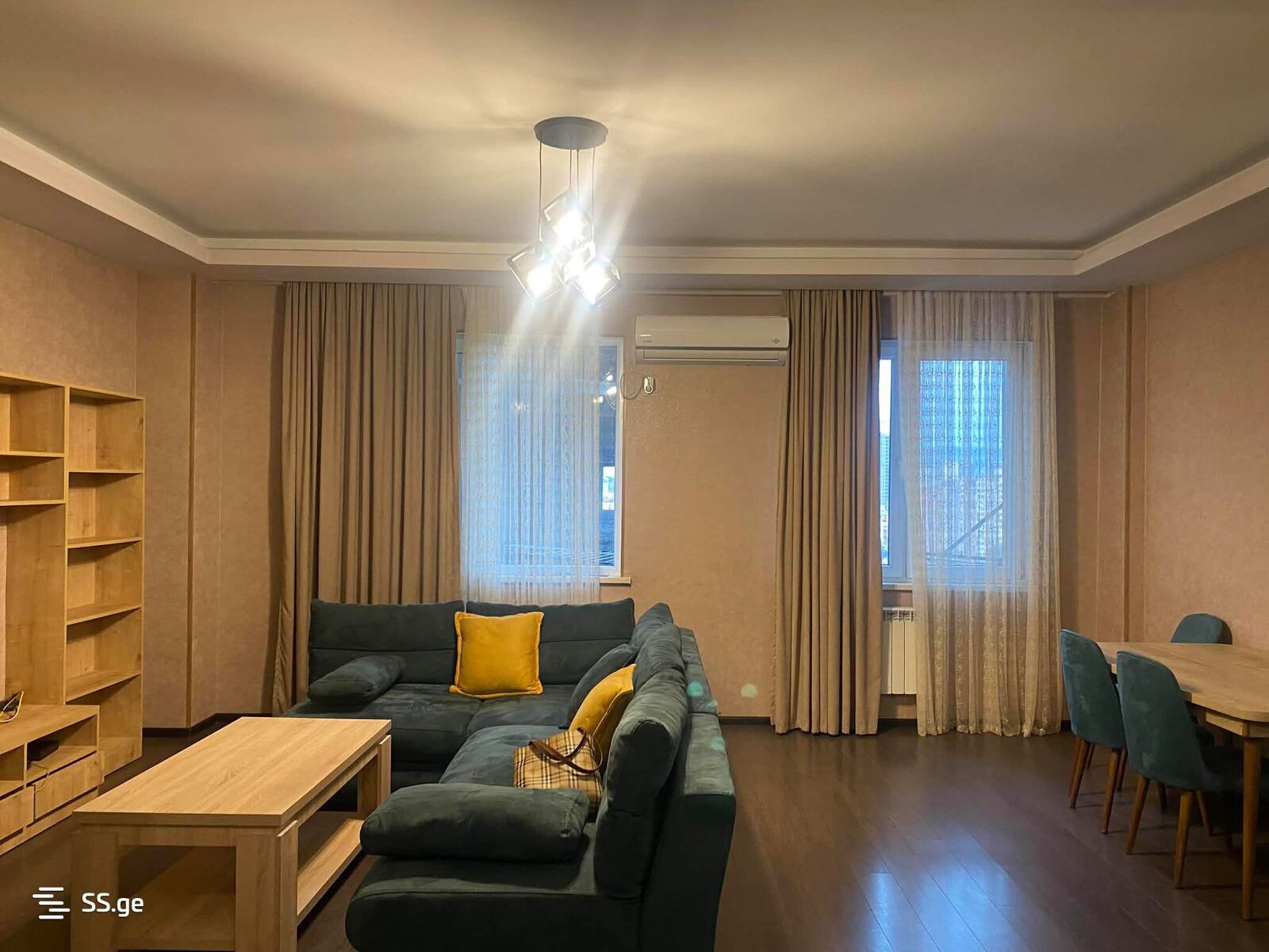 Комментарий: For rent a three-room apartment in a new building near the sports palace. The apartment has parking in the yard for one car. It is well furnished. 3 minutes away from the metro. Payment for the first and last month.