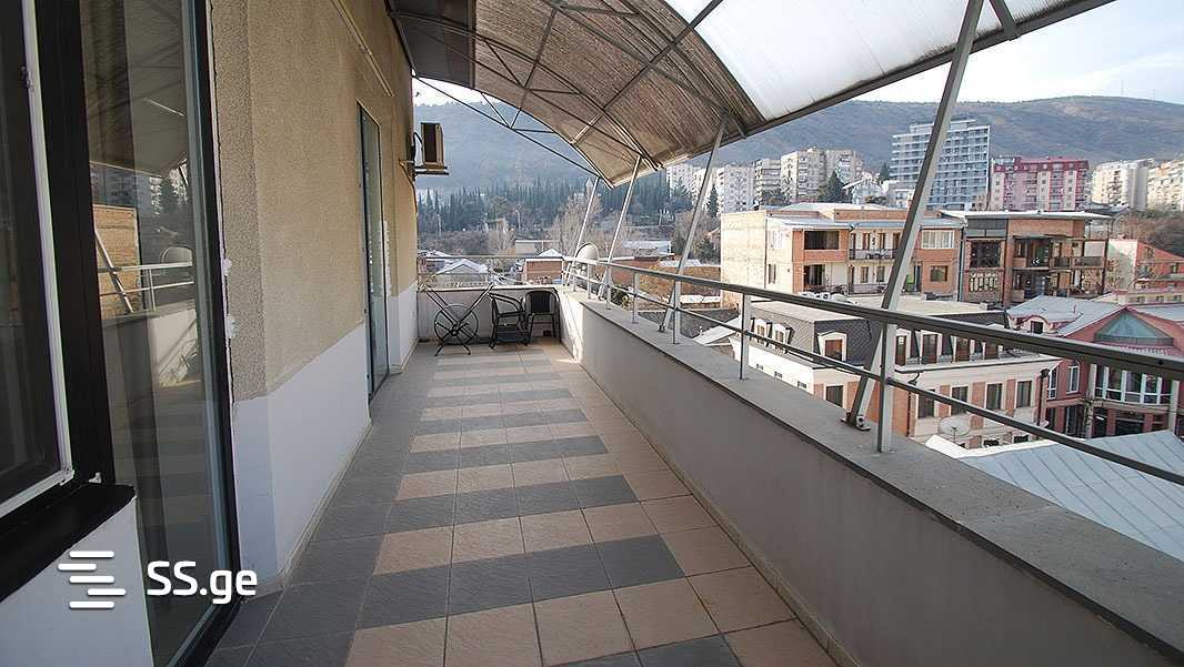 Четырехкомнатная, нестандартная, полностью меблированная квартира в центре Тбилиси, на Вере, с видами из каждой комнаты, большой верандой и балконами из каждой комнаты. 3 спальни, 2 ванные комнаты, гараж, меблирована и оборудована бытовой техникой.