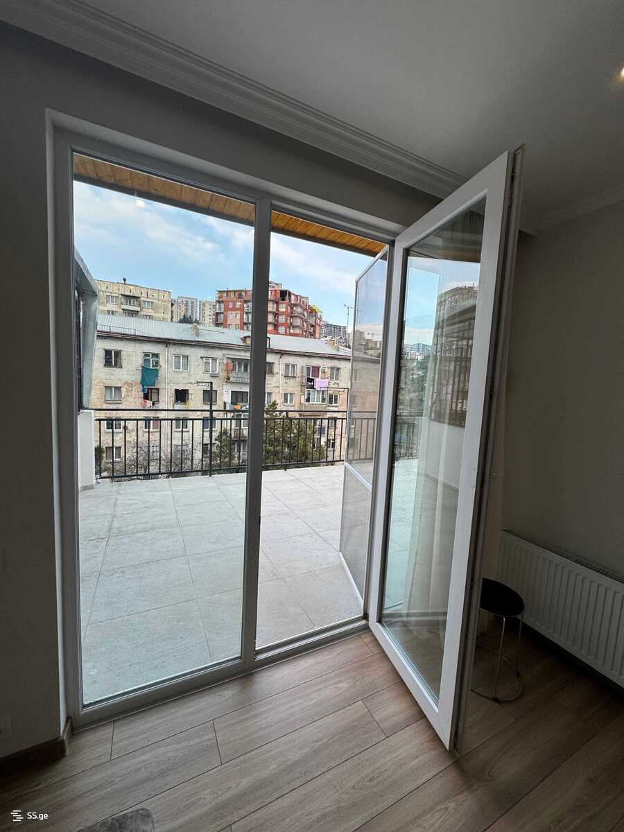 გარემონტებული ბინა ავეჯით, მაცივარი, სარეცხის მანქანა, კონდენციონერი, ცენტრალური გათბობა . დიდი ვერანდით