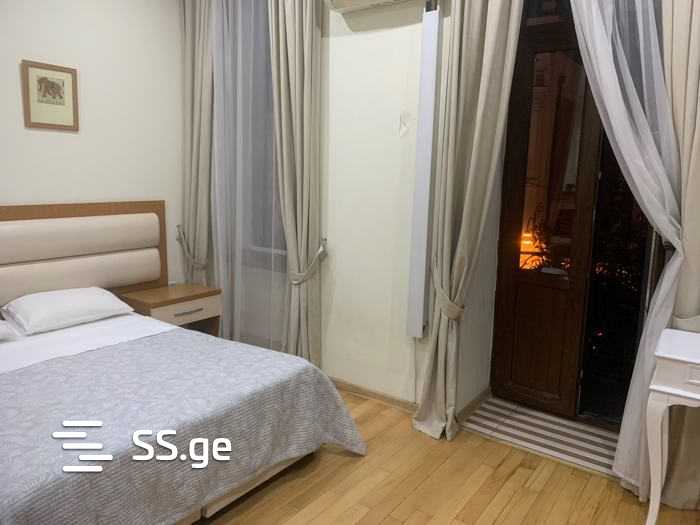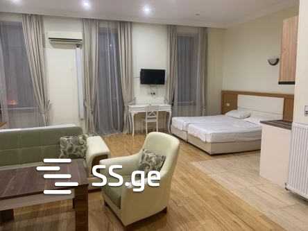 Сдается помесячно просторная и светлая однокомнатная квартира студийного типа со всем необходимым оборудованием: санузел, кухня, балкон, камин, в доме 124 по адресу Агмашенебели. В номере одна двуспальная и одна односпальная кровати, а также диван. Цена