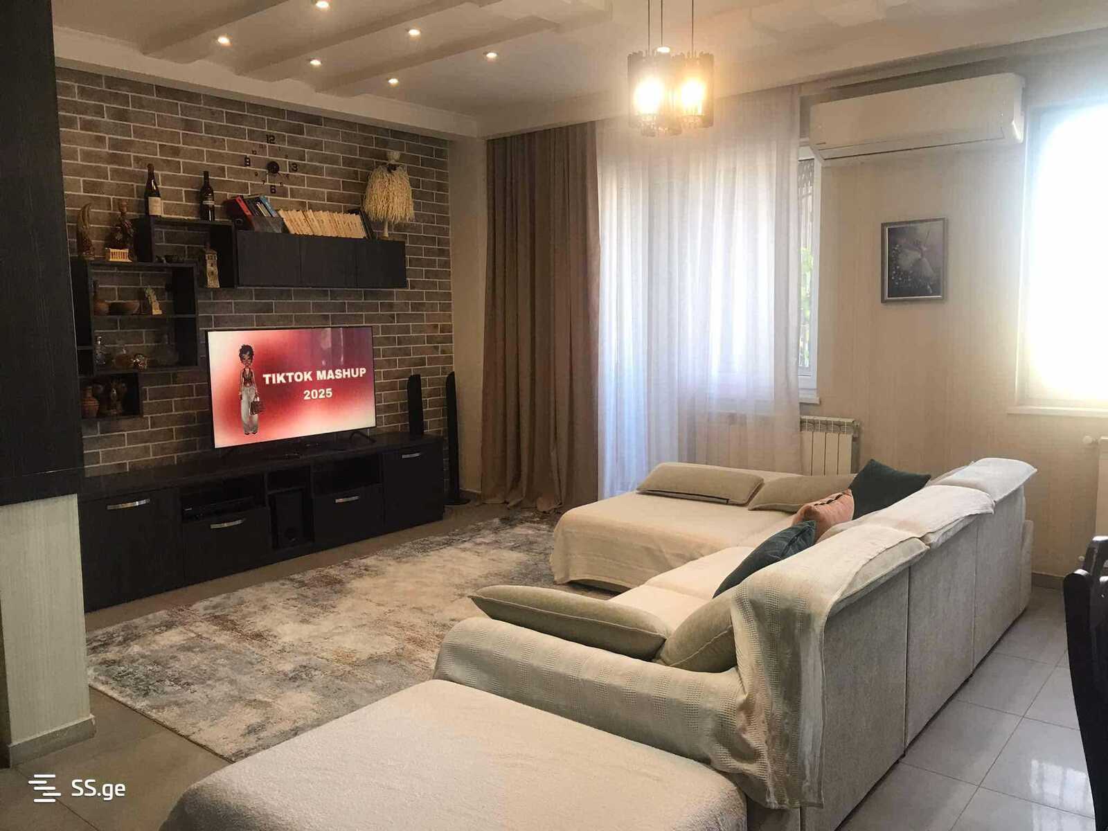 Сдается 3-комнатная квартира-студия в Сабуртало, улица Бочоришвили, возле Дворца спорта. Площадь квартиры 95 кв.м., спальни 2, санузел 1, в квартире есть небольшой балкон, 7 этаж, цена 750 долларов США (эквивалент в лари), если интересно свяжитесь с нами.