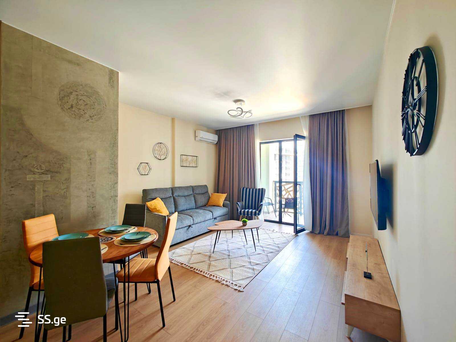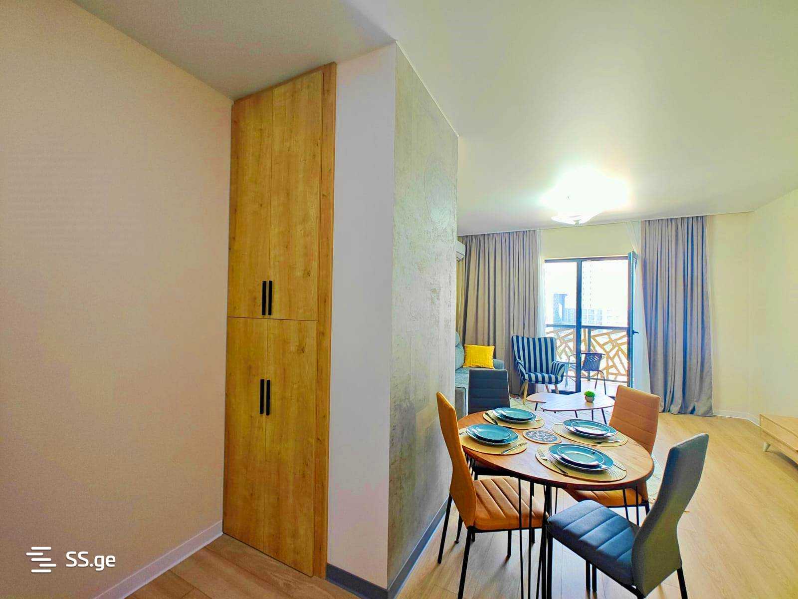 Комментарий: For rent: a 2-room apartment with new renovation on Marshal Gelovani Avenue, in the 7th block of M3, 64 sq.m, on the 6th (20th) floor, with a balcony, furnished and equipped, with two air conditioners, and a dishwasher. ID 102831