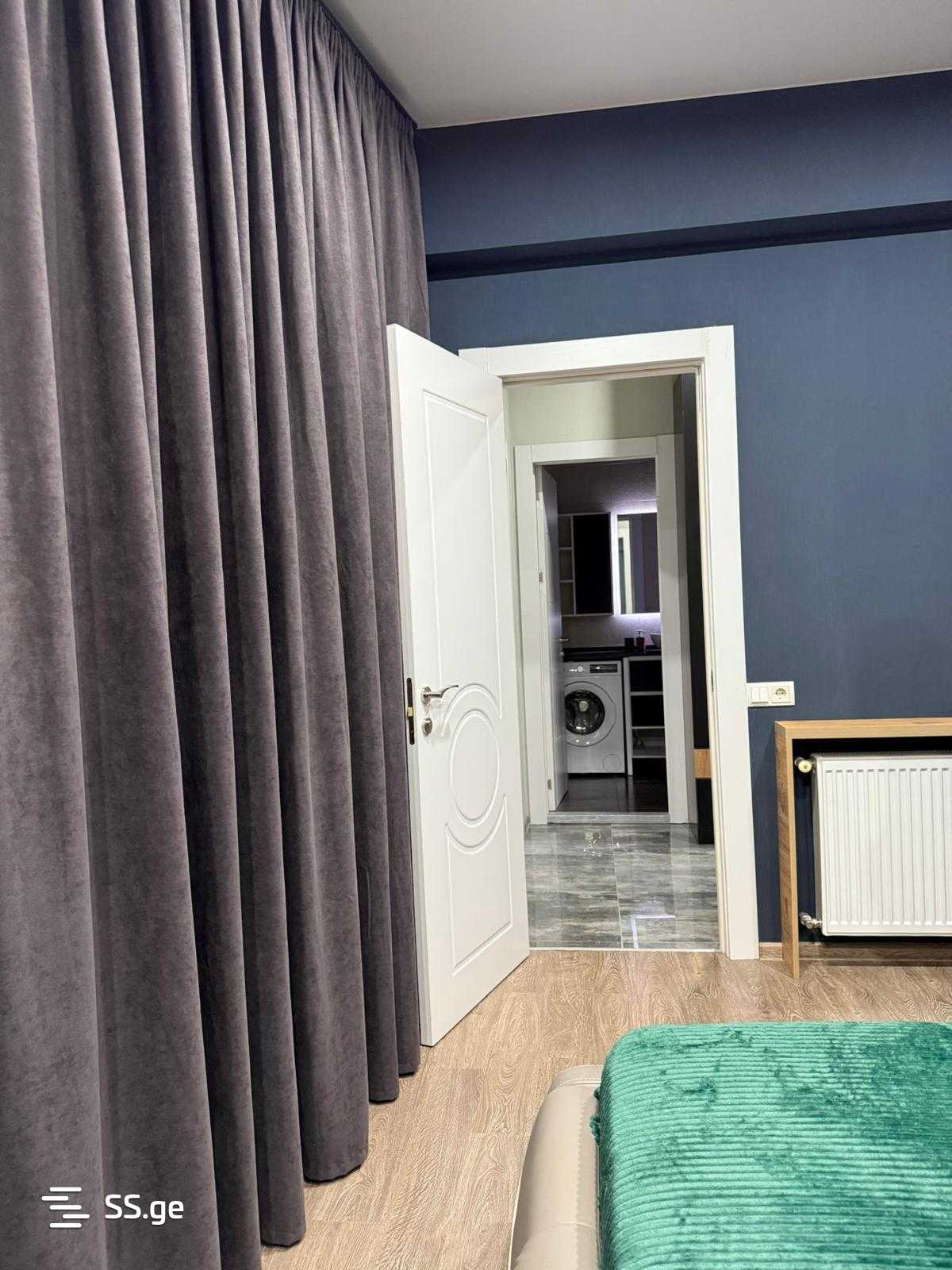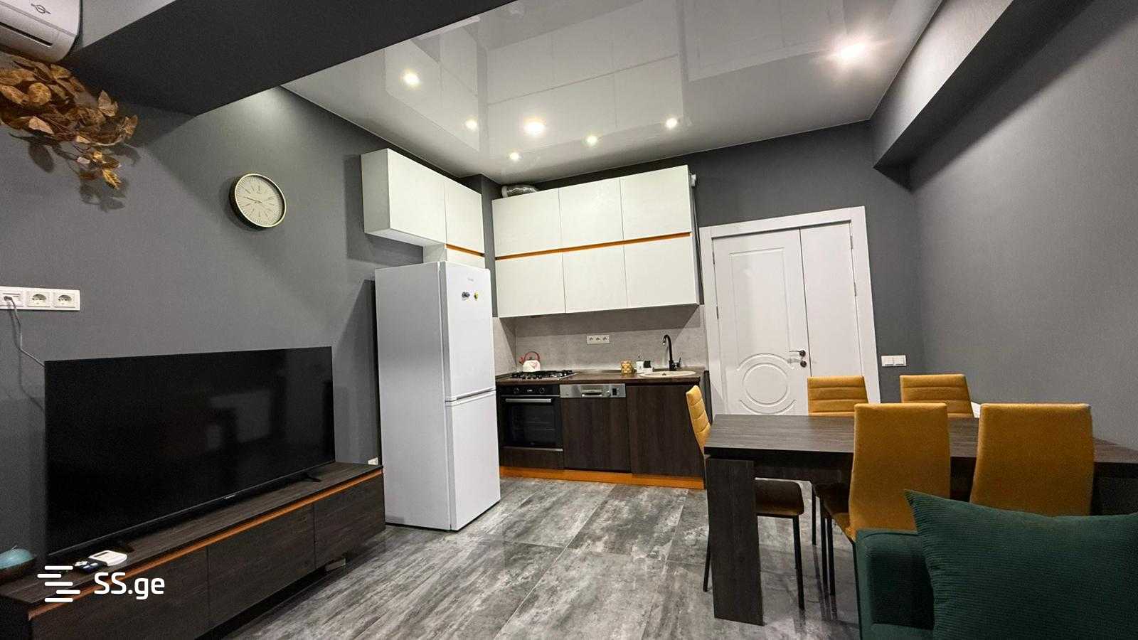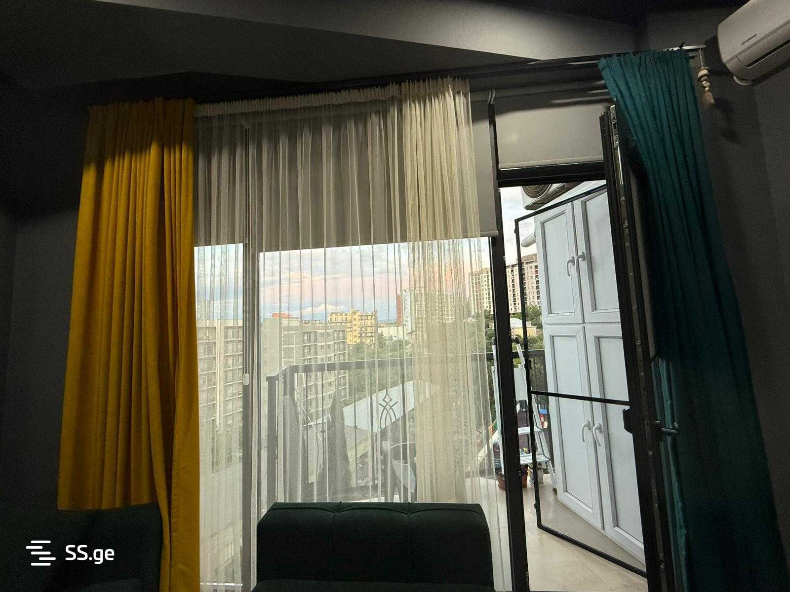 Сдается: 2-комнатная квартира в Вашлиджвари, на улице Годзиашвили, в строящемся доме, с новым ремонтом, 60 кв.м, на 4 этаже (13), с мебелью и техникой, с 2 балконами, посудомоечной машиной, кондиционером, видом на улицу, парковкой во дворе. Квартира солнечная и светлая.