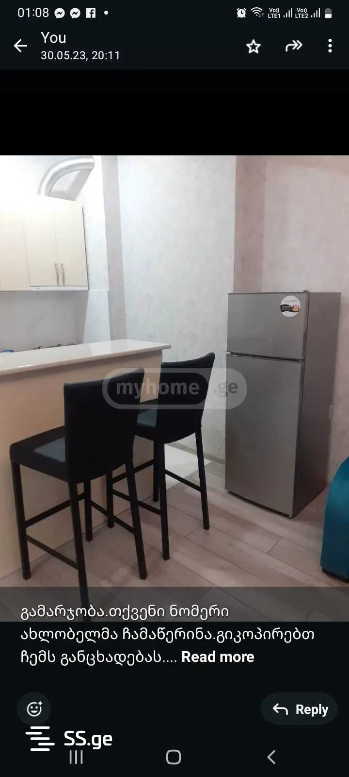Сдается 2-комнатная квартира-студия возле клиники Имеди, со всей мебелью и техникой, включая кондиционер.