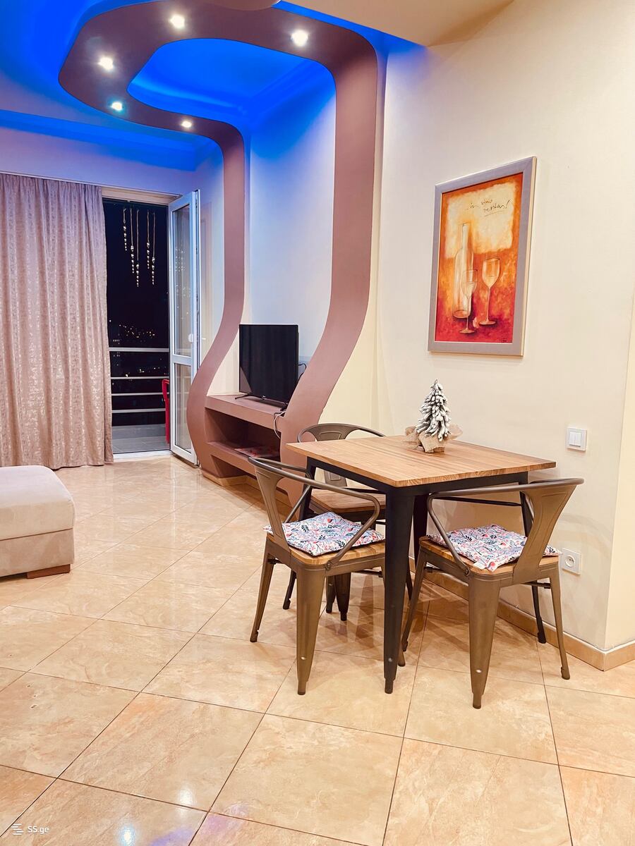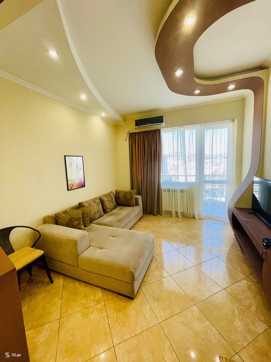 Комментарий: A 2-room studio with a balcony is for rent in a new house on Kavtaradze Street, Saburtalo. Clean, tidy, bright apartment with the best view, on the 17th floor. The house has 24-hour security.