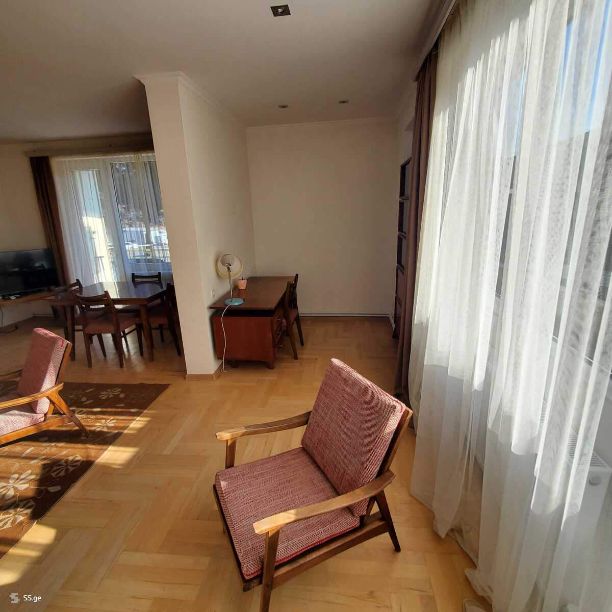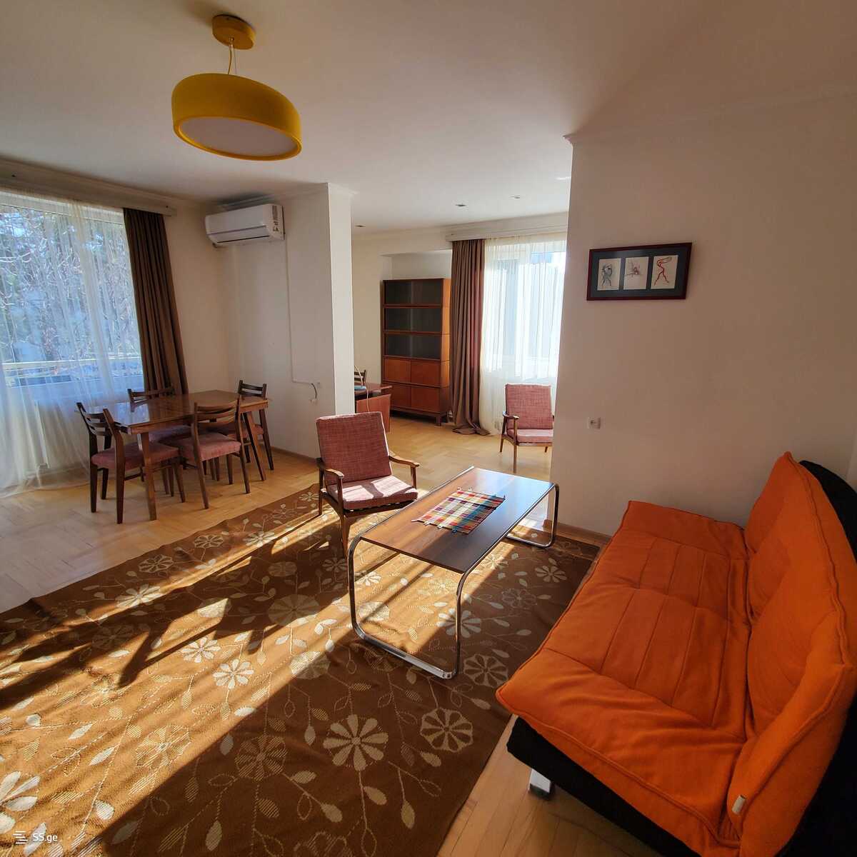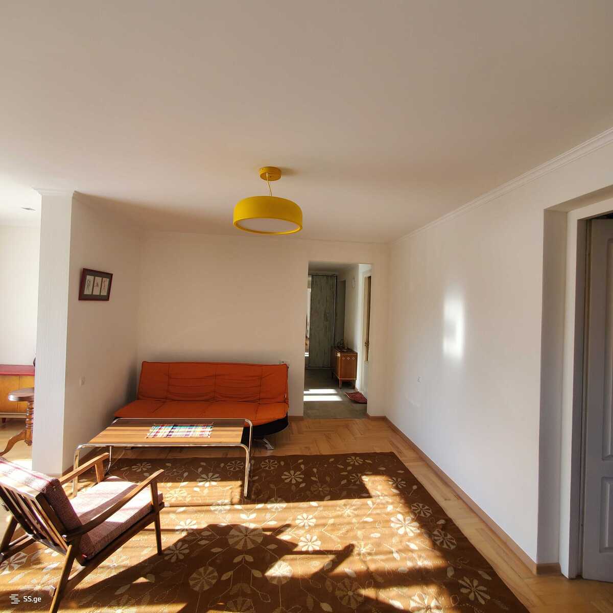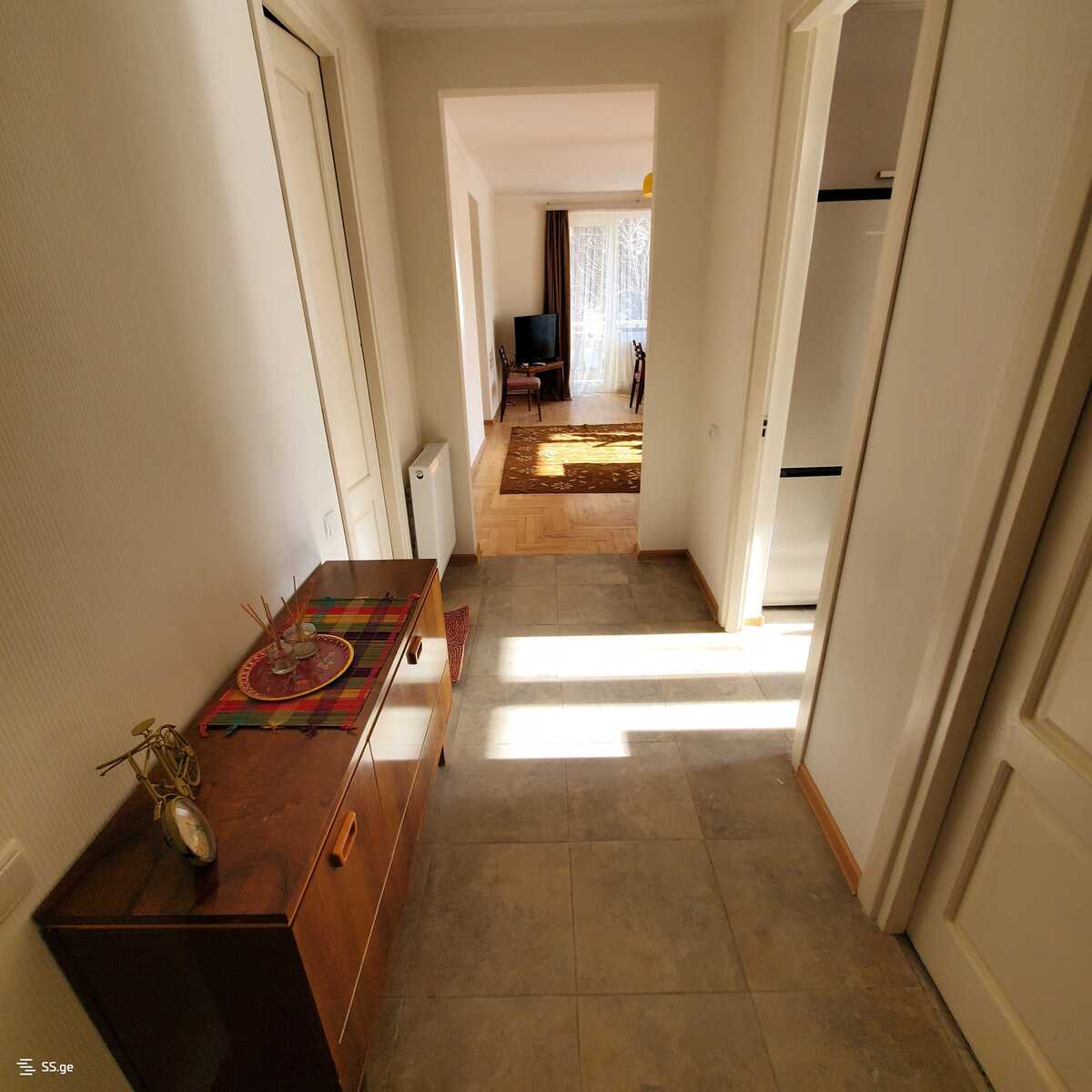 Комментарий: A very luminous, cozy, renovated, fully furnished one-bedroom apartment composed of a big living room, loggia, one bedroom, an eat-in fully equipped kitchen, large bathroom, two corridors and two balconies, with new appliances. Two months’ advance payment and a contract are required. Price -1200 GEL