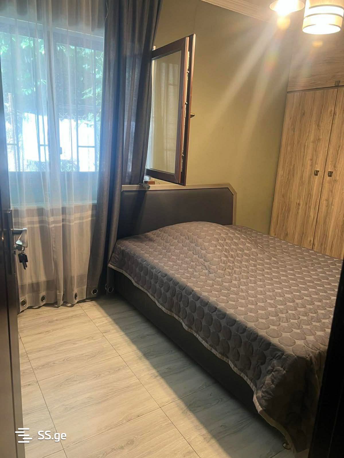 Комментарий: ქირავდება ბინა ორ საძინებლიანი პატარა ეზოთი. ცენტრალური გათბობით ავეჯით და ტექნიკით.