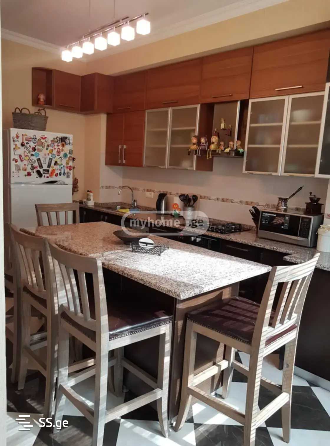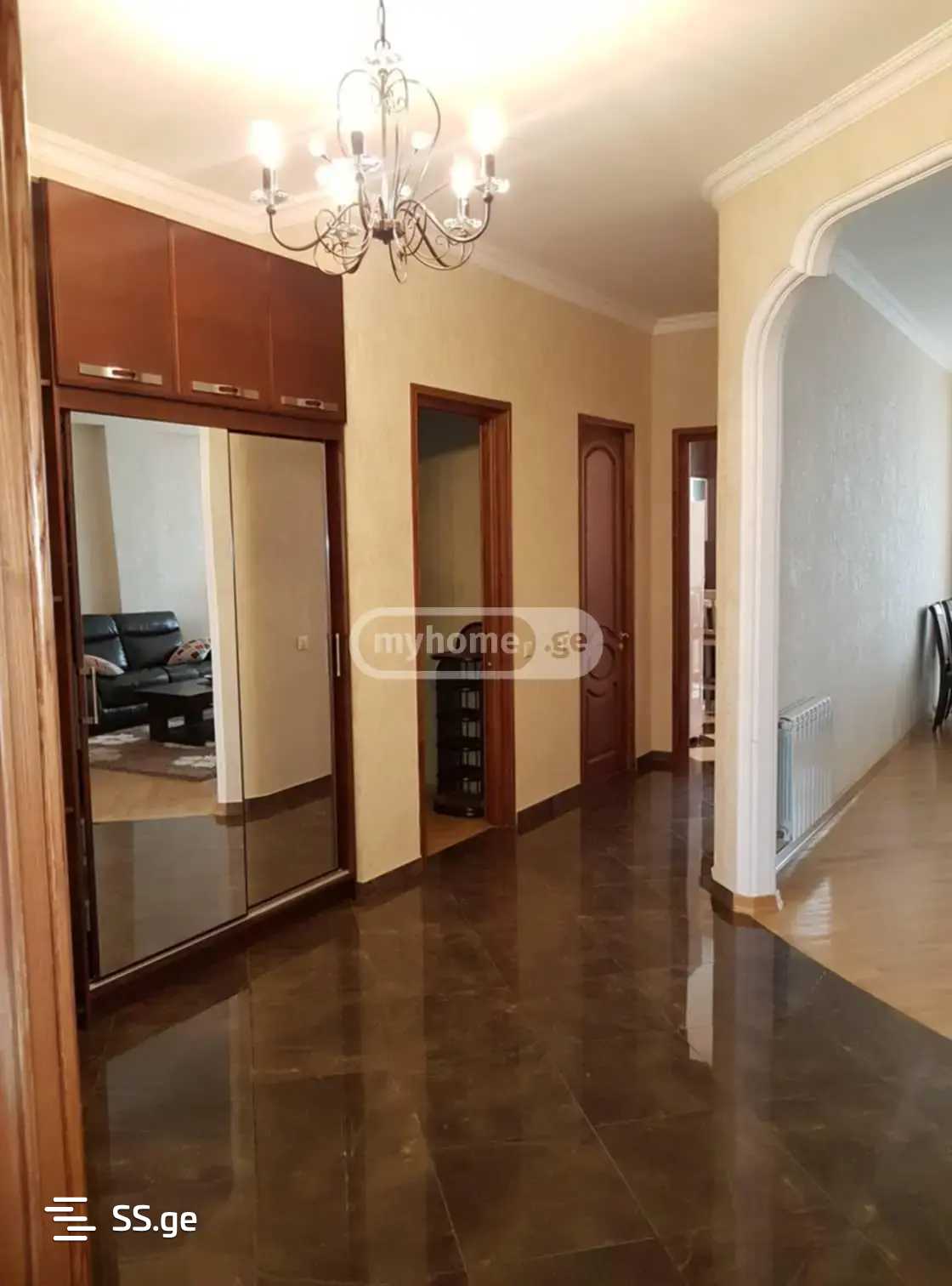 Сдается меблированная квартира на Сабуртало, проспект Важа-Пшавела, возле метро Важа, в новостройке, новый ремонт, 5 комнат, 3 изолированные спальни, вся необходимая мебель и техника, центральное отопление, кондиционер, посудомоечная машина, 2 санузла, балкон, гараж. Первый и последний месяц с предоплатой