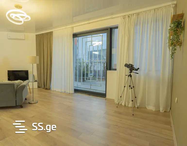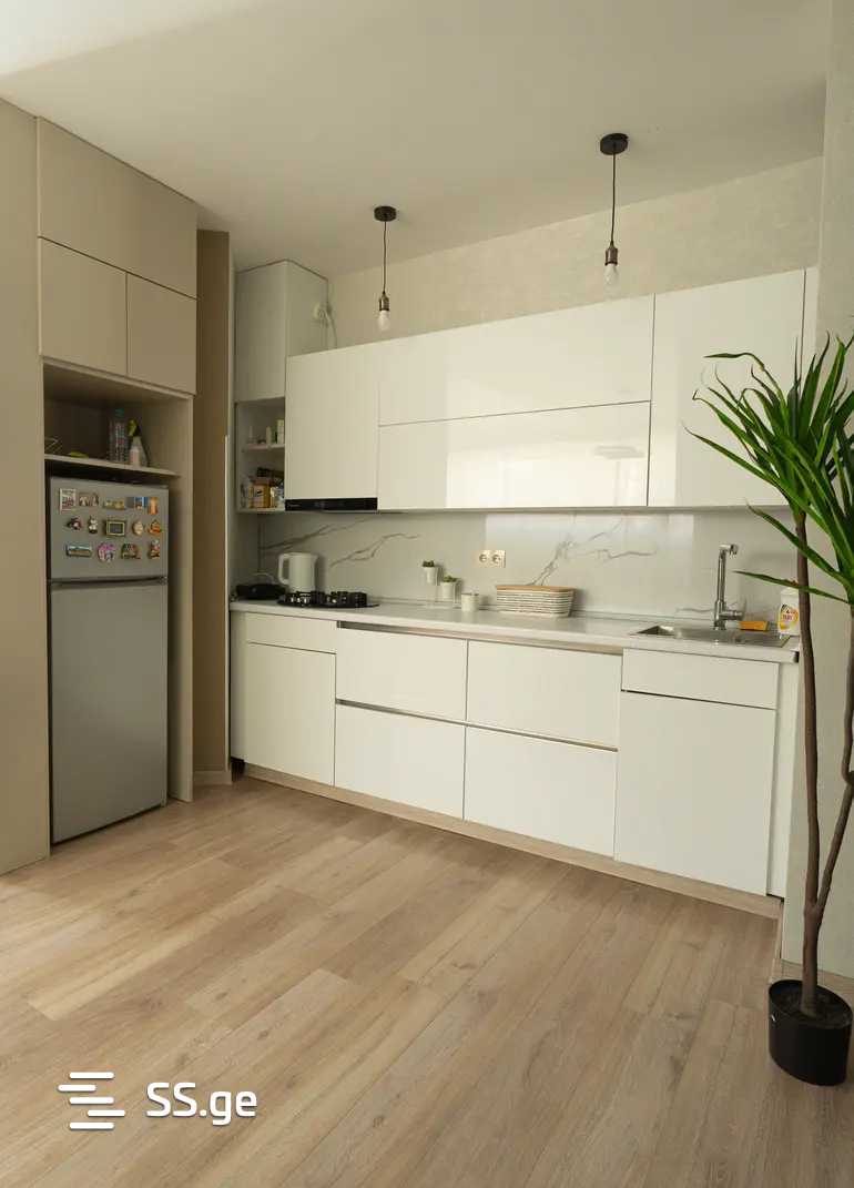 ბინა აღჭურვილია ტექნიკით, ჭურჭლის სარეცხი მანქანით, წინ გამწვანებული ვერანდით და პარკინგით.